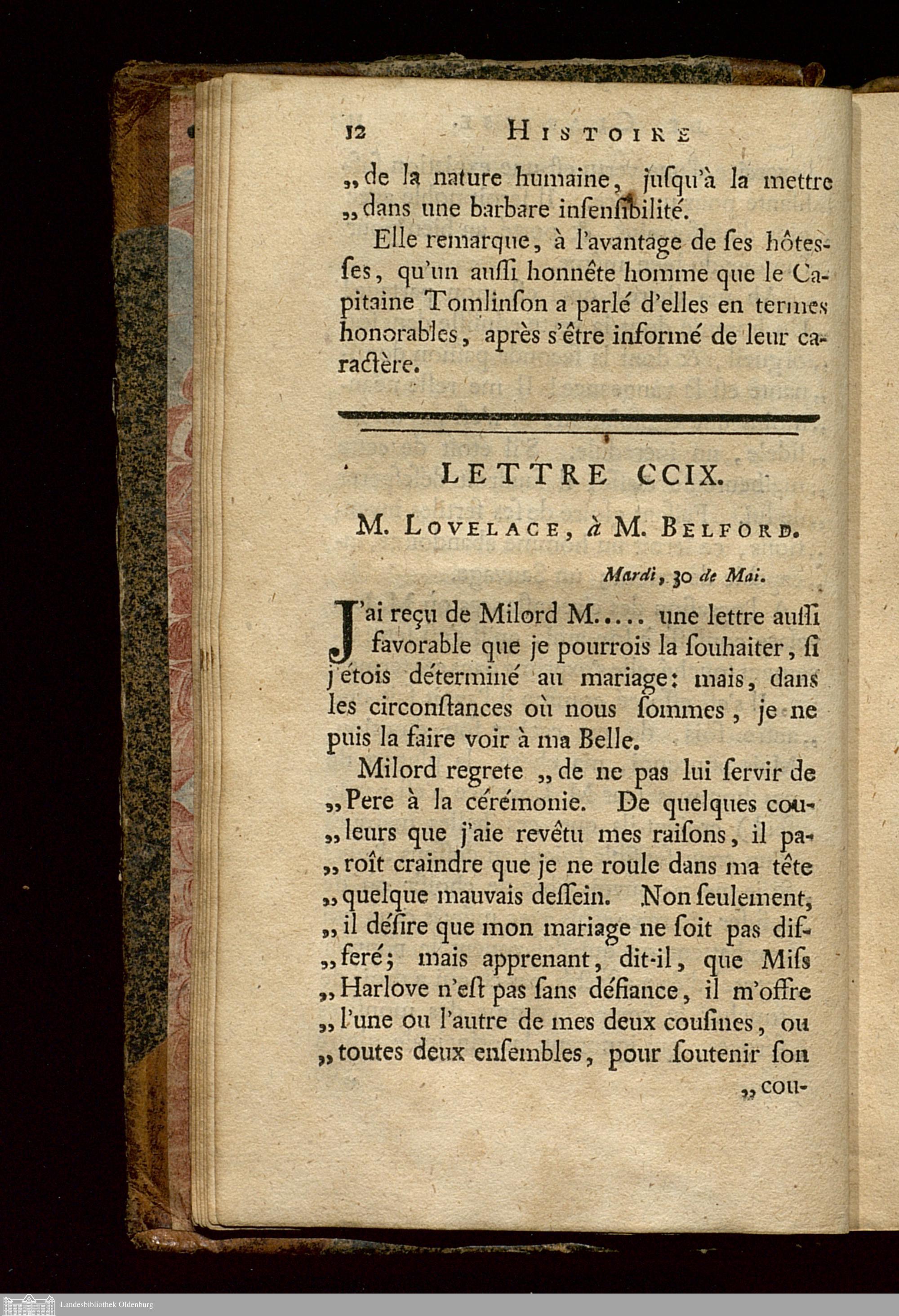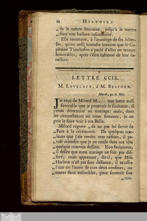 Lettre CCIX. M. Lovelace, à M. Belford.