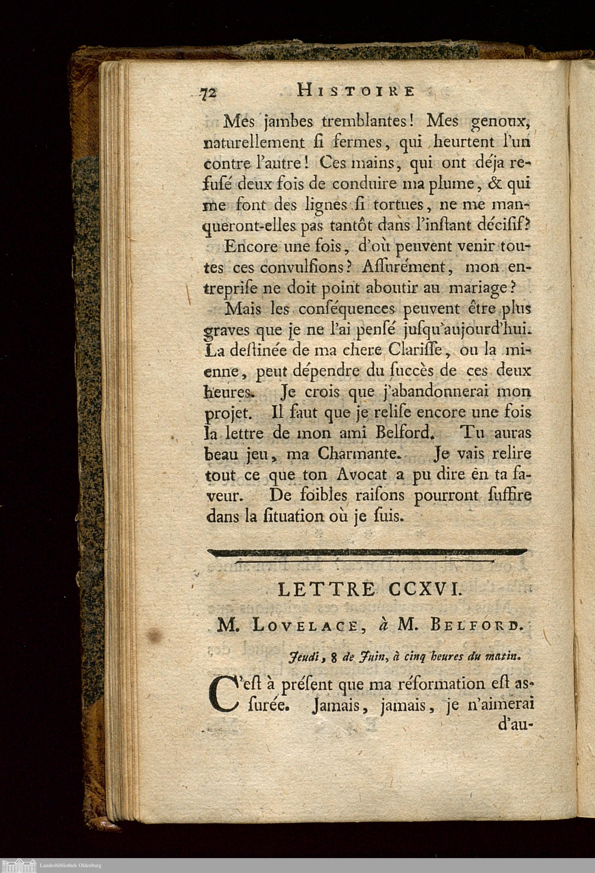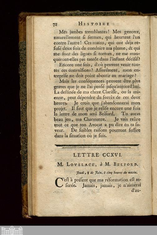 Lettre CCXVI. M. Lovelace, à M. Belford.