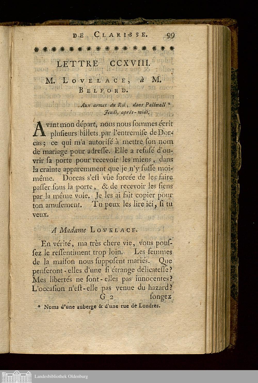 Lettre CCXVIII. M. Lovelace, à M. Belford.