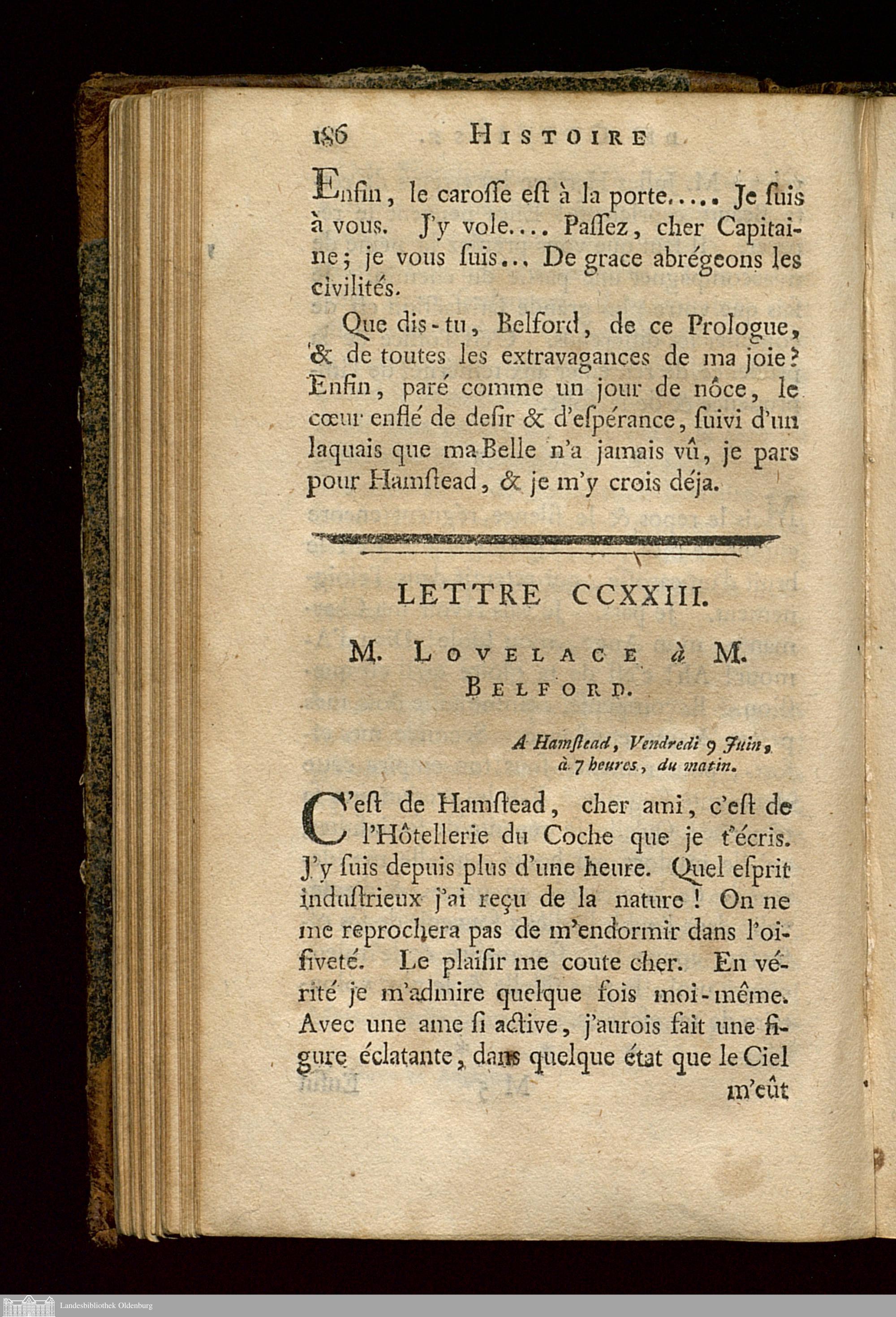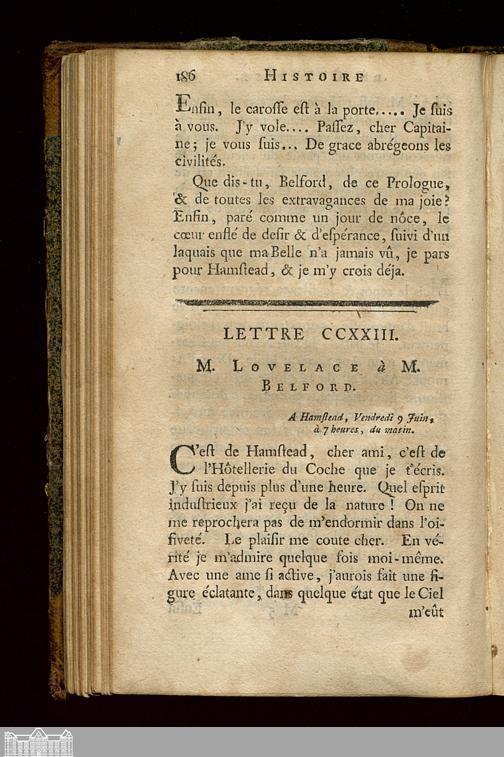 Lettre CCXXIII. M. Lovelace, à M. Belford.
