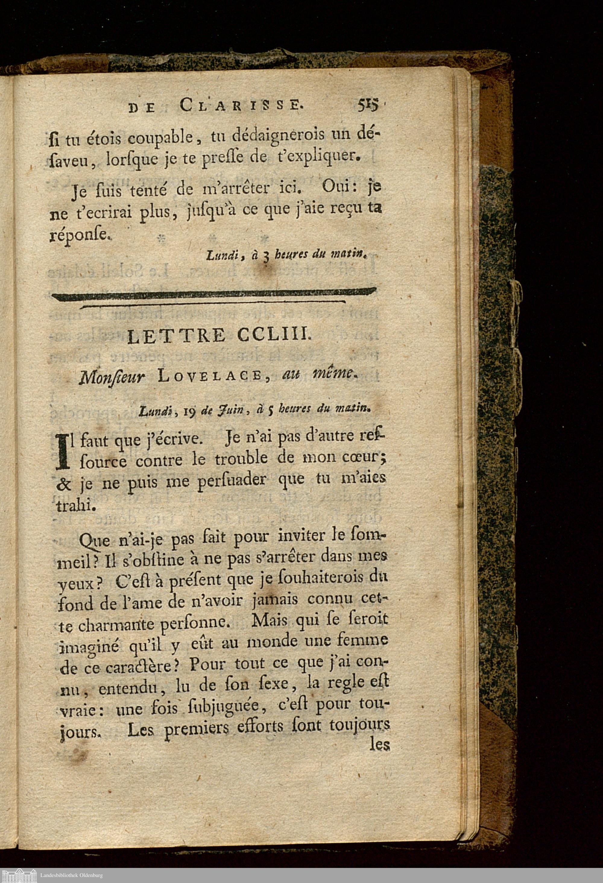 Lettre CCLIII. Monsieur Lovelace, au meme.