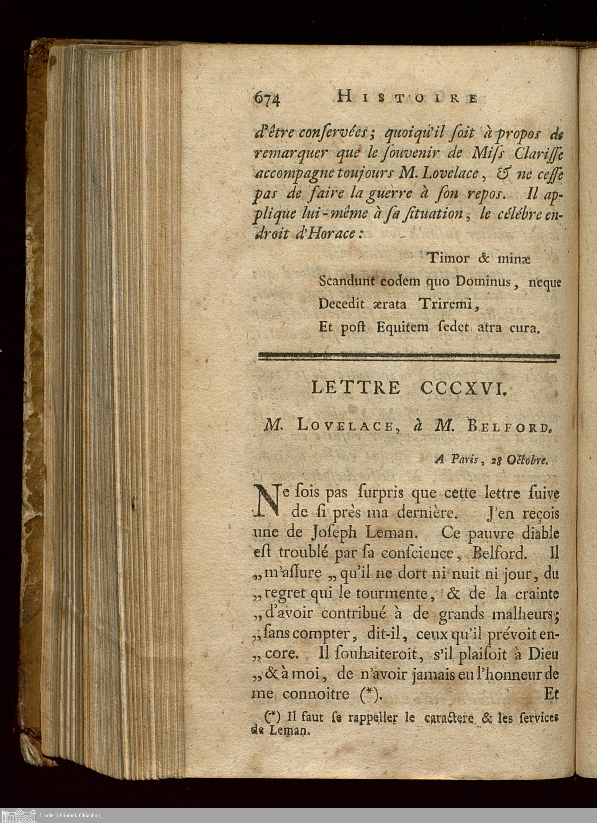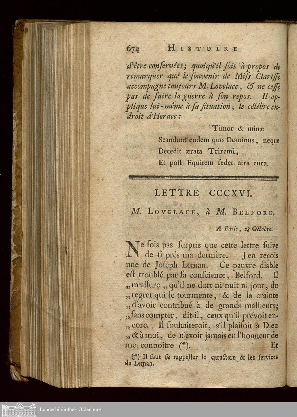 Lettre CCCXVI. M. Lovelace, à M. Belford.