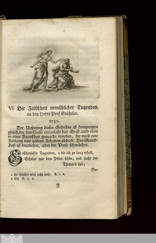 VI. Die Falschheit menschlicher Tugenden, an den Herrn Prof. Stähelin.