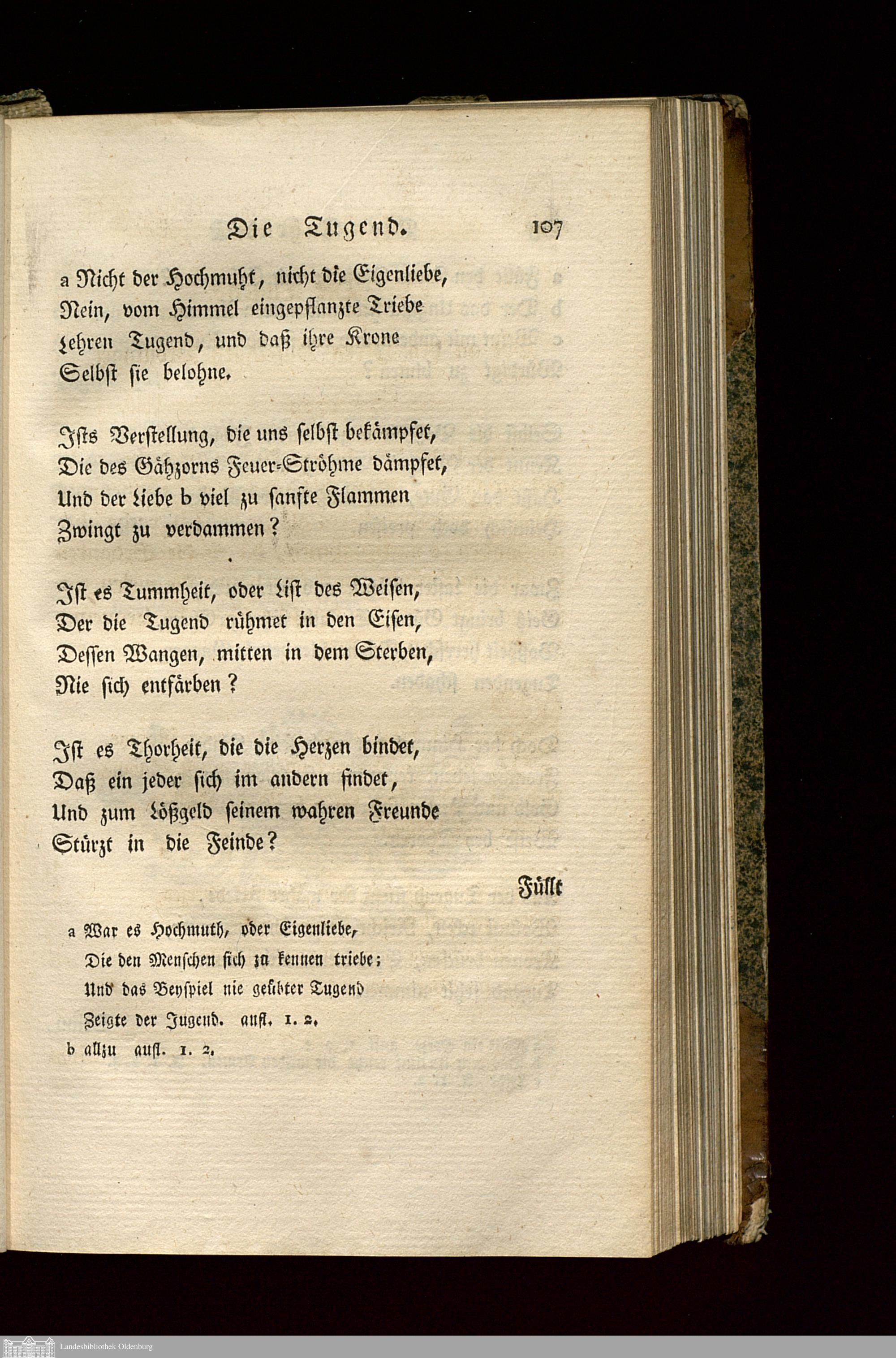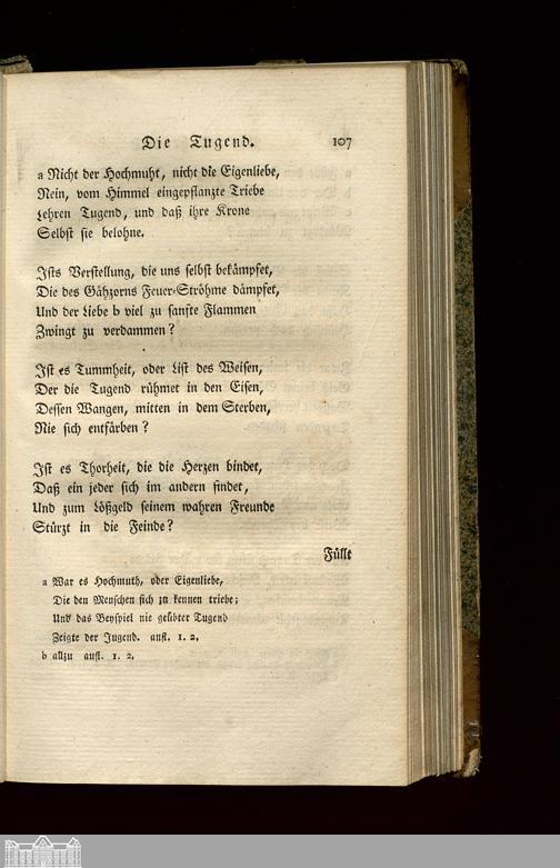 VII. Die Tugend. Ode an den Herrn Hor-Rath Drollinger.