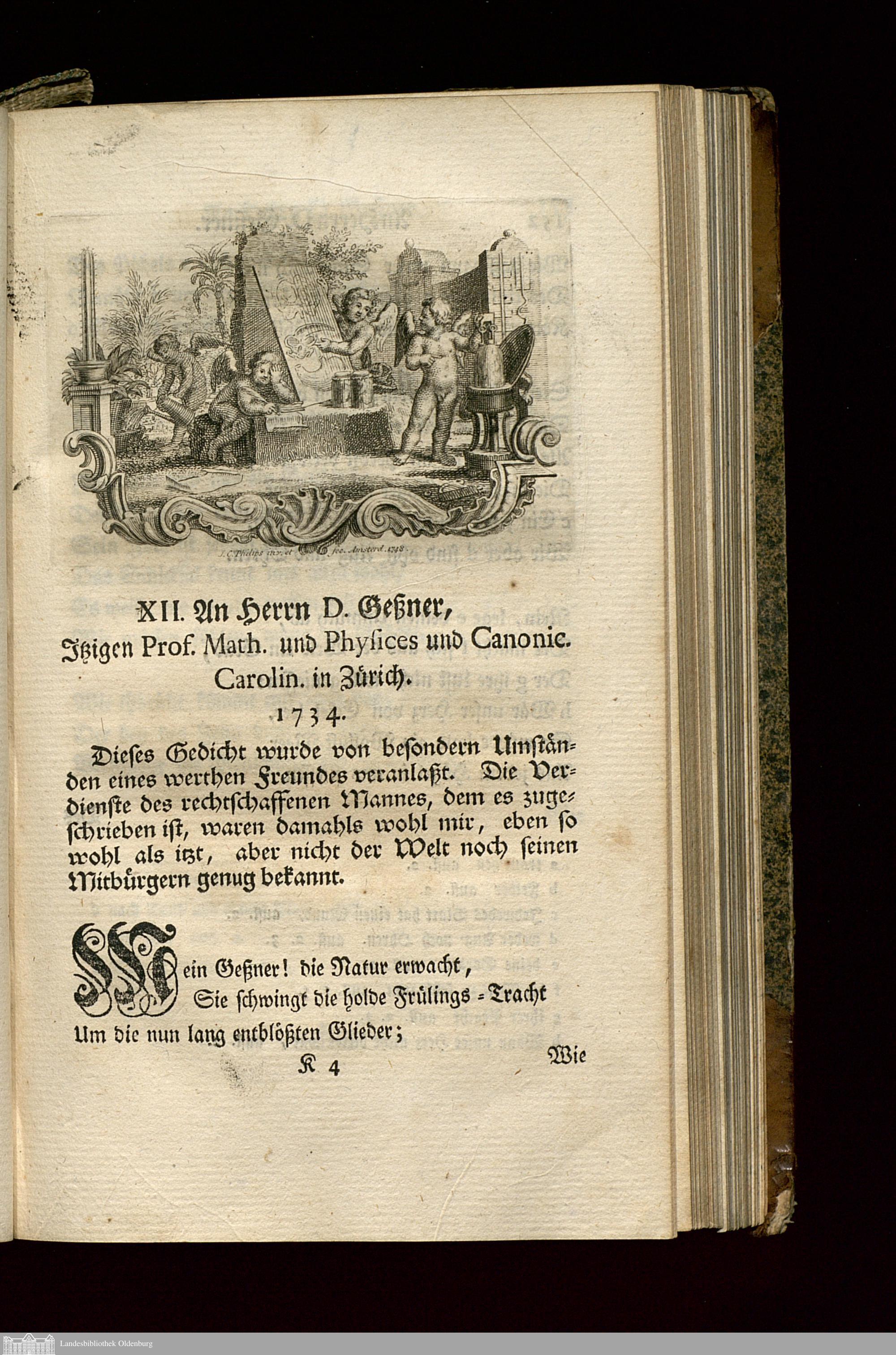 XII. An Herrn D. Geßner, Jtzigen Prof. Math. und Physices und Canonic. Carolin. in...