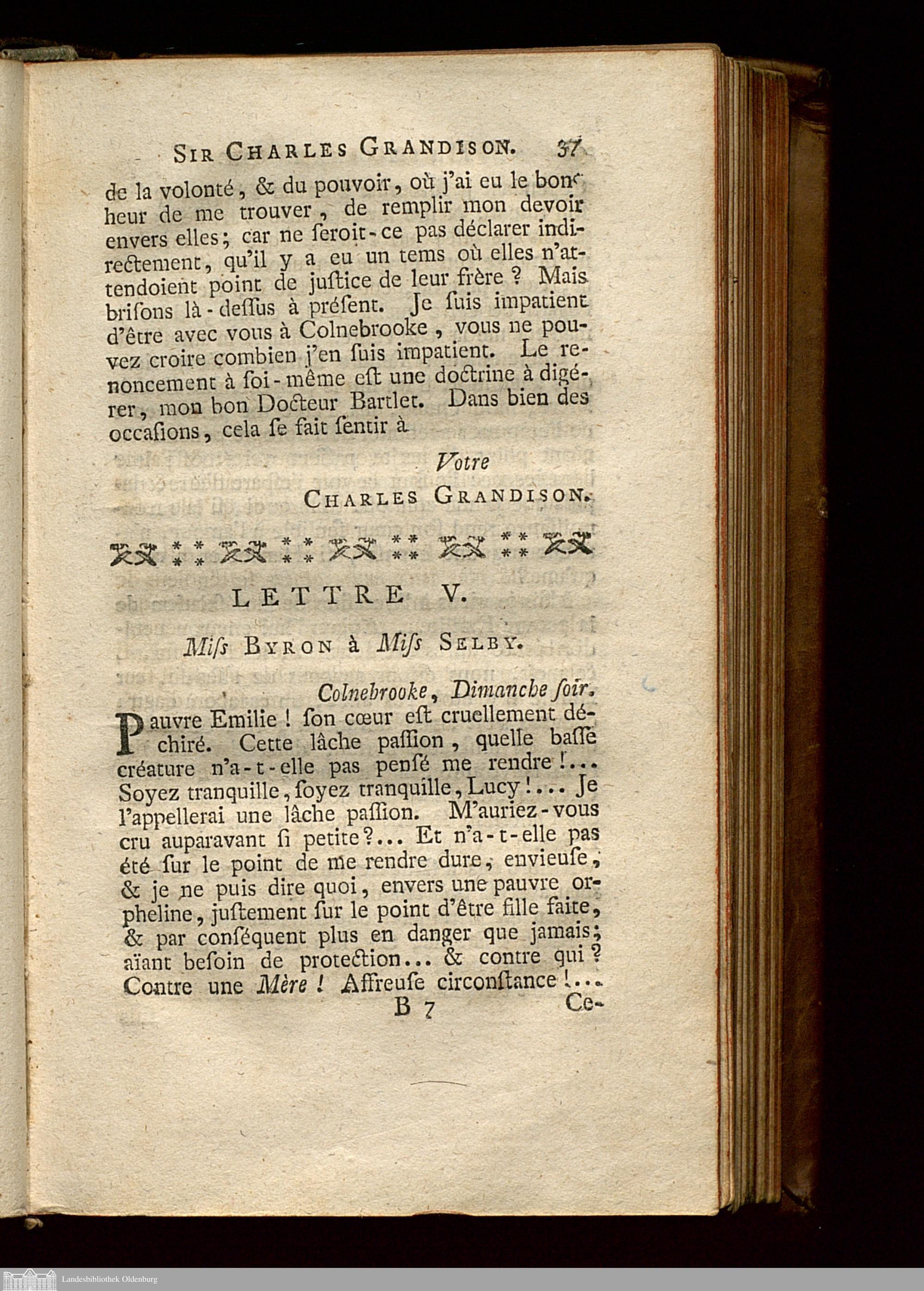 Lettre V. Miss Byron à Miss Selby.