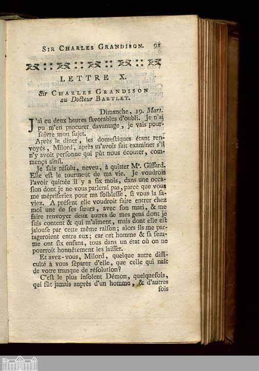 Lettre X. Sir Charles Grandison au Docteur Bartlet.