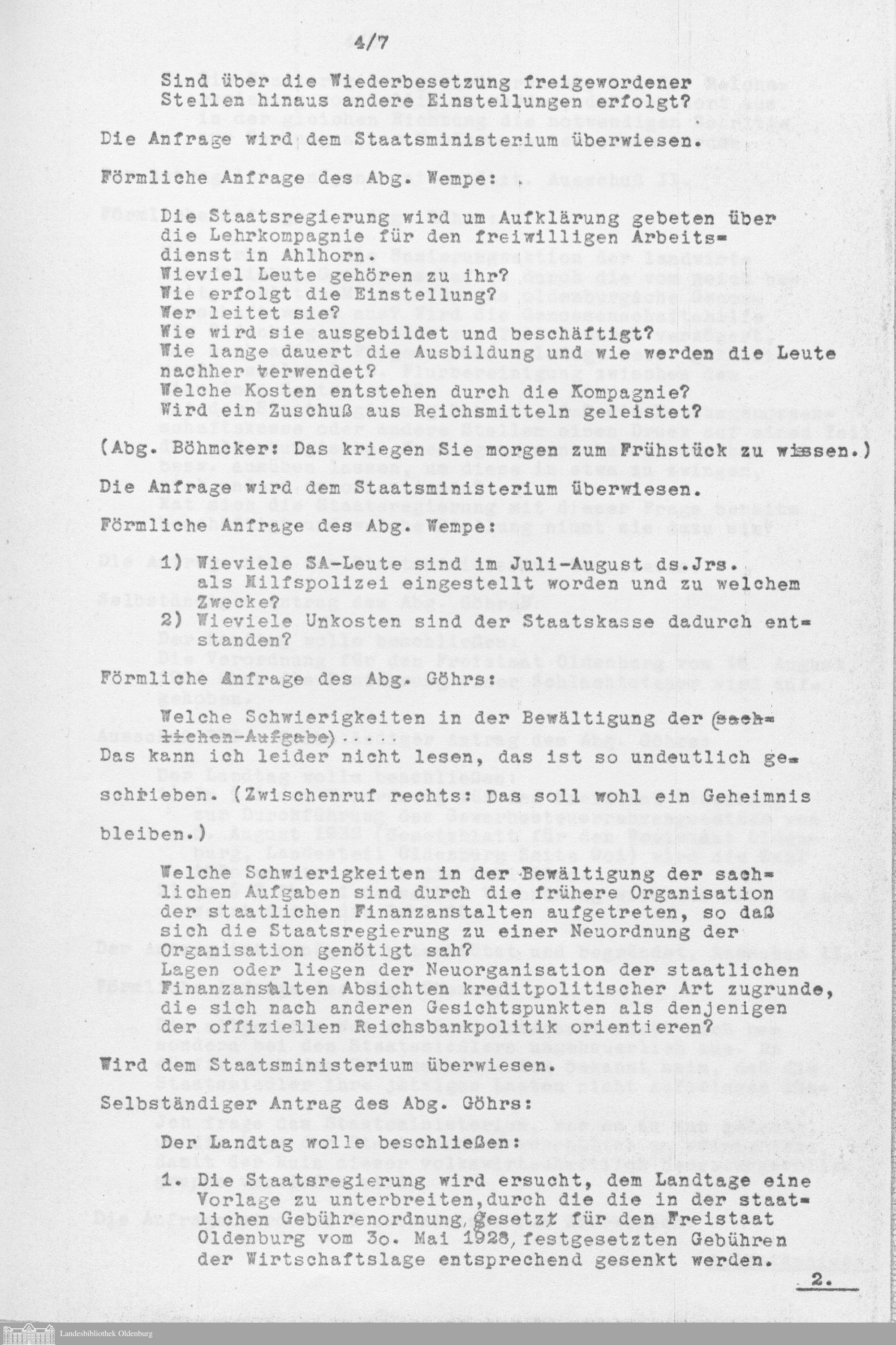 5. Landtag, 7. Versammlung, 1.-10. Sitzung