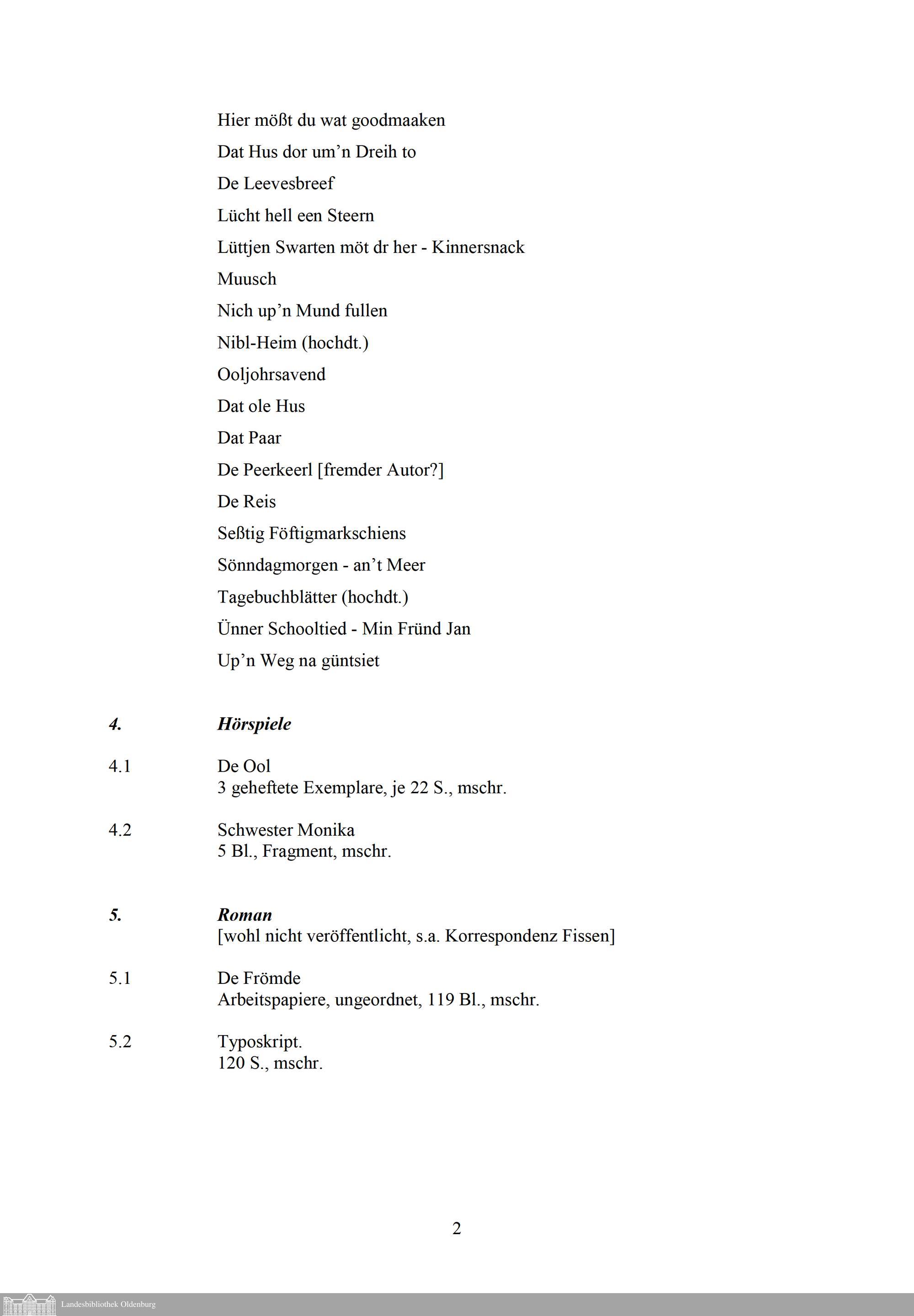Schriftstellerische Arbeiten