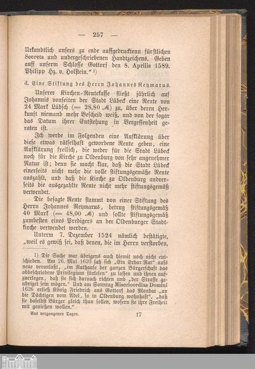Aus vergangenen Tagen : Chronikbilder aus der Vergangenheit Oldenburgs in Holstein / von K. Hollensteiner