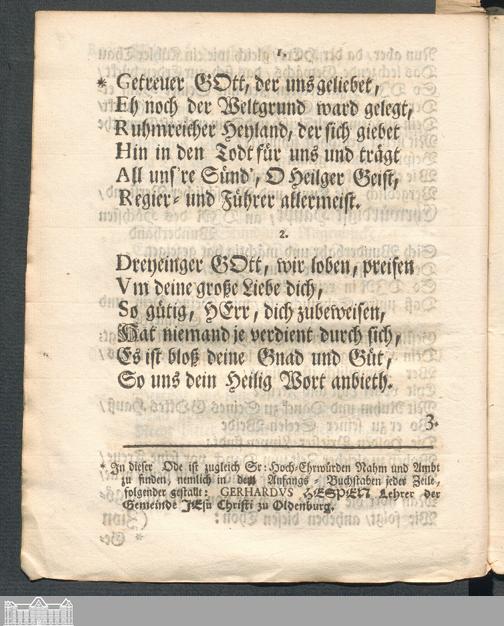 Das Oldenburgische Zion in hertzlichem Danck gegen den grossen Gott, der den Müden Krafft giebt : und innigster Freude über S. T. Den ... Herrn Gerhard Hespen, des Königl. Consistorii Assessorem, ... den 6. Februarii dieses 1737ten Jahres, in der Kirchen zu St. Lamberti alhier, ... / eingeführet von Jo. Paulo Schumann