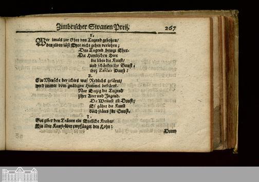 Candorins Deutscher Zimber Swan : Darin Des Hochlöbl. ädelen Swan-Ordens Anfang, Zunamen, Bewandnis, Gebräuche, Satsungen, Ordensgesätse, samt der Hochansähel. Geselschafter Ordens-Namen entworfen
