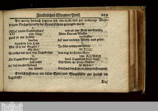 Candorins Deutscher Zimber Swan : Darin Des Hochlöbl. ädelen Swan-Ordens Anfang, Zunamen, Bewandnis, Gebräuche, Satsungen, Ordensgesätse, samt der Hochansähel. Geselschafter Ordens-Namen entworfen