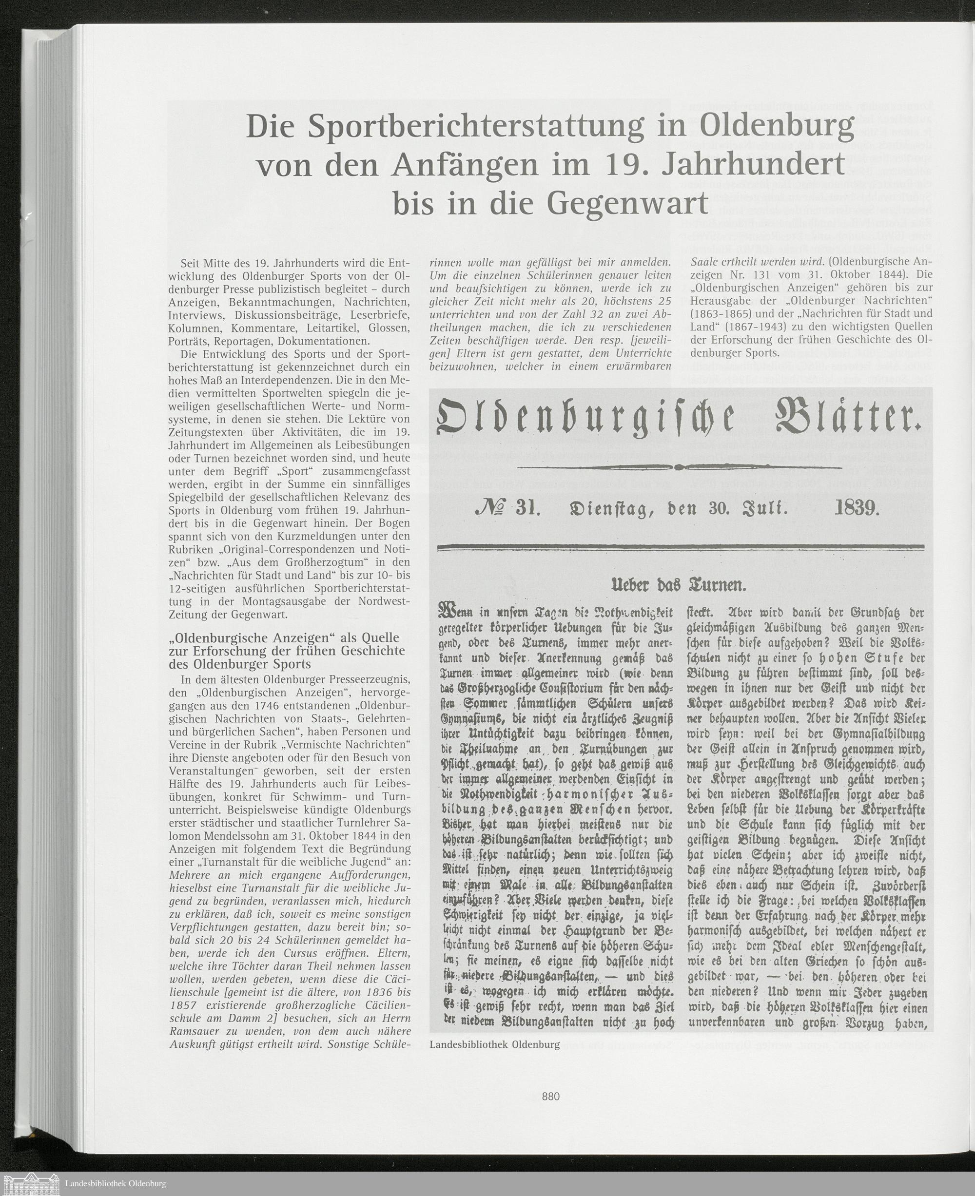 Die Sportberichterstattung in Oldenburg von den Anfängen im 19. Jahrhundert bis in...