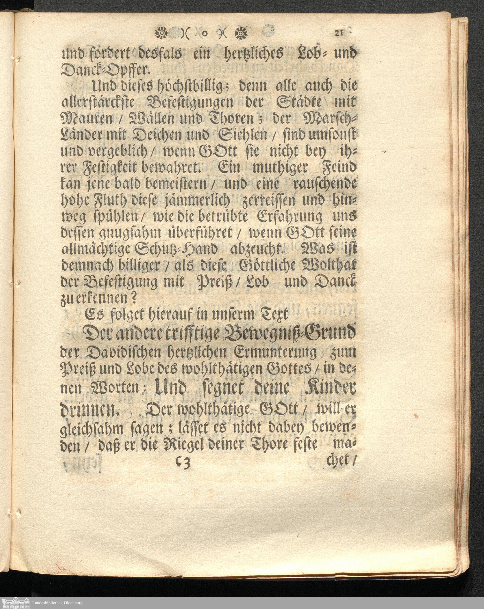 Davids Hertzliche Ermunterung zum Preise und Lobe des wohlthätigen Gottes : wurde, aus dessen CXLVII. Psalm v. 13. 14. 15. nachdem in Anno 1732. die Jahder- und Wapeler-Siehle, ... neu geleget, aber, bey angefangener neuen Deich-Arbeit, ... in einer gehaltenen Rede ... / von Gerh. Bolcken, Past. der Gemeine Christi bey der Jahde