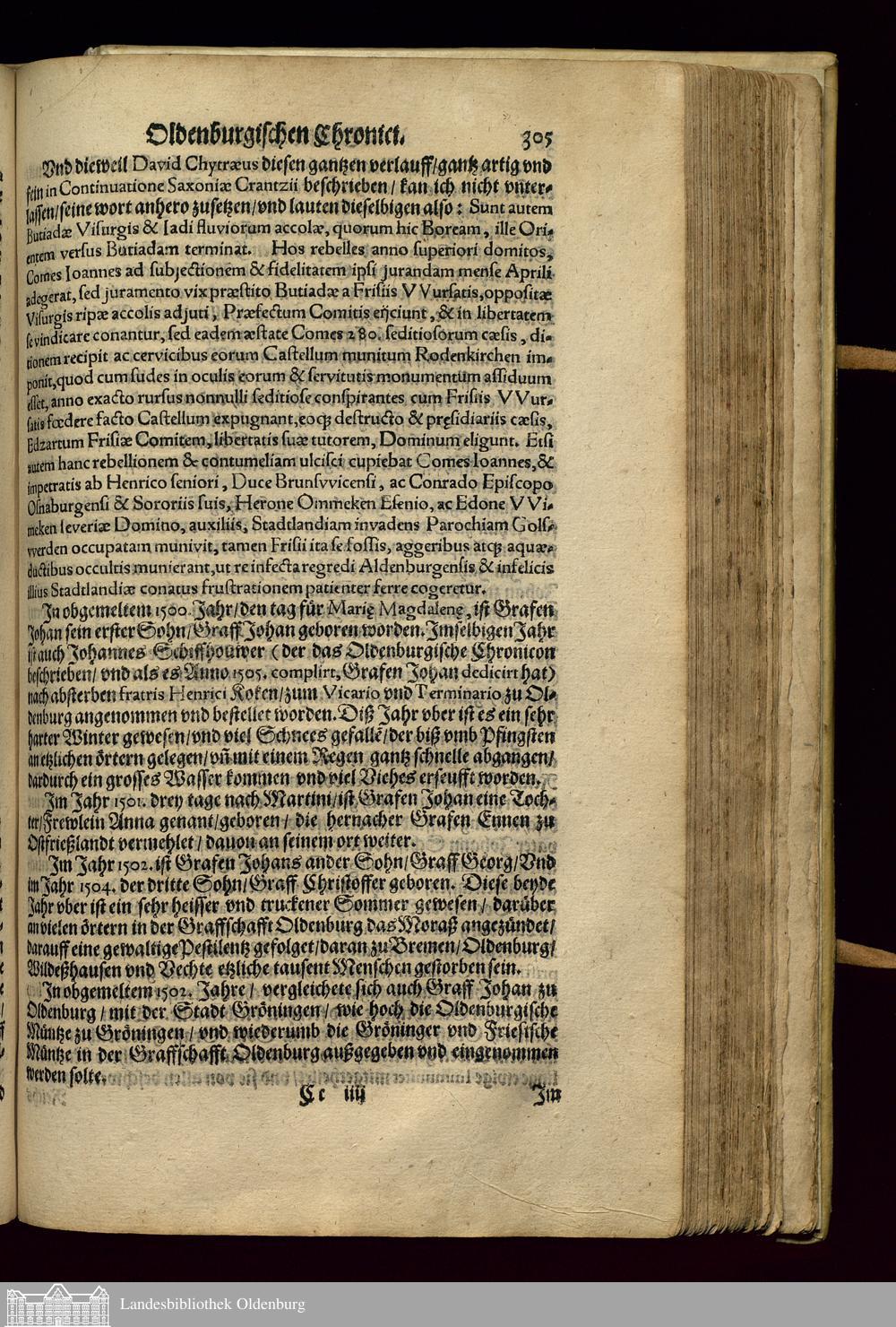 Oldenburgisch Chro-||nicon Das ist/|| Beschreibung|| Der Löblichen Vhralten|| Grafen zu Oldenburg vnd Del-||menhorst/[et]c. Von welchen die jetzige|| Könige zu Dennemarck vnd Hertzo-||gen zu Holstein entsprossen/ : Sampt|| Jhres Stammens ersten An-||kunfft/ Thaten/ Regierung/ Leben vnd|| Ende / mit künstlichen Brustbildern vnd|| Wapen gezieret / auffs aller fleissigste|| zusammen getragen/|| Durch|| Hermannum Hamelmannum,|| der heiligen Schrifft Licentiaten|| vnd Superintendenten der|| Graffschafft Ol-||denburg