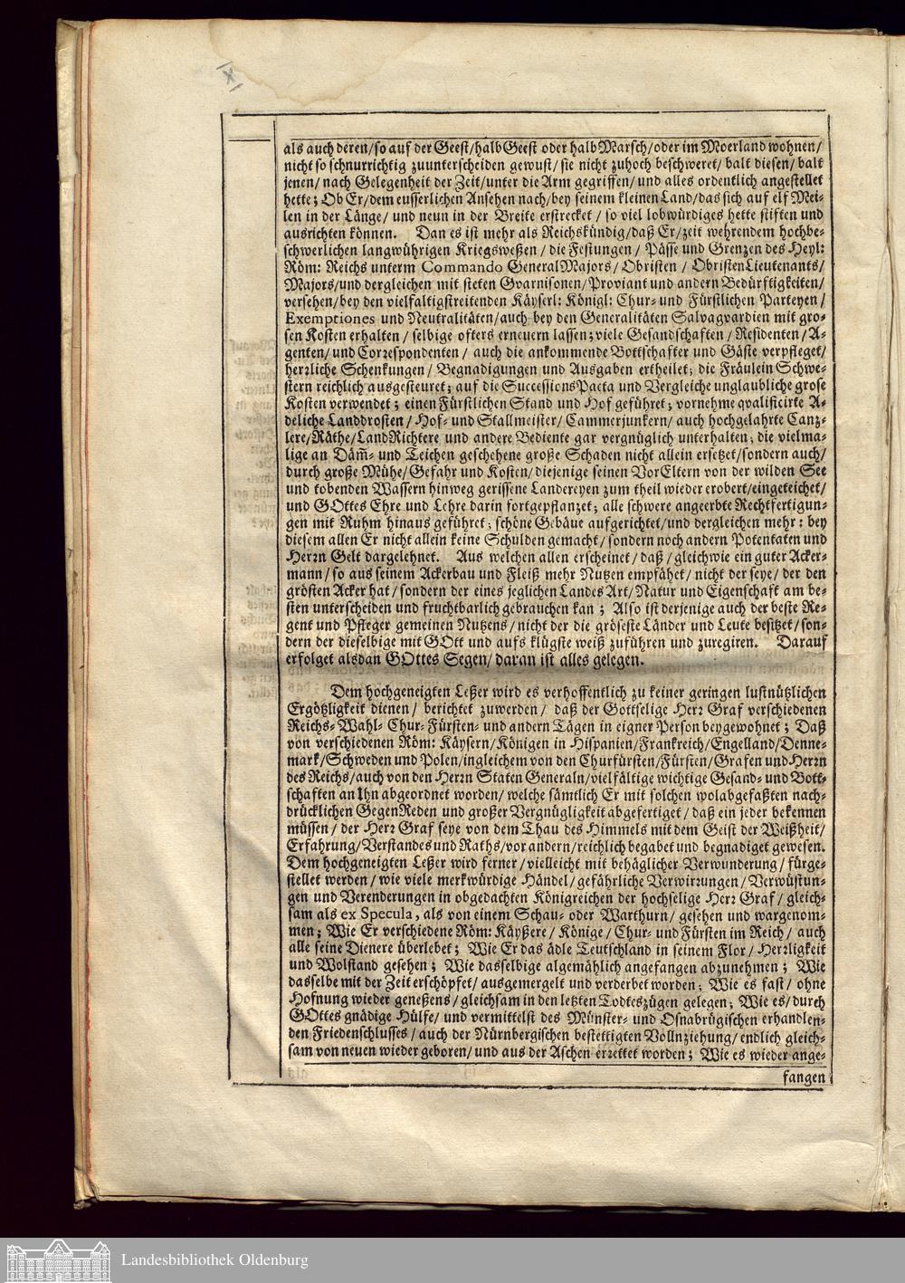 Oldenburgische Friedens- und der benachbarten Oerter Kriegs-Handlungen : Darinn Des ... Anthon Günthers/ Grafens zu Oldenburg und Delmenhorst/ ... Uralte hohe Ankunft/ ... fürsichtige ... Regirung ... und hochseliger Abschied: Wie auch Eine warhafte Beschreibung Der Grafschaften Oldenburg und Delmenhorst/ Herrschaften Jhever und Kniphausen/ Statt-Buttjhadinger- und WürderLanden [et]c. sambt ... wichtigen ... Historischen und Politischen Sachen/ so sich vom Jahr 1603. wie auch vorhero/ bis auf das Jahr 1667. begeben / Aus ... Original-Archivalischen Acten ... zusammen getragen/ und ... in Fünf Theile verabfasset/ Mit schönen kunstreichen Kupferstücken/ und ... Conterfaiten ausgezieret ... Von Johann-Just Winkelmann/ HochFürstl: Hessischen/ auch vormaligen HochGräfl: Oldenburgischen Rath und Historiographo