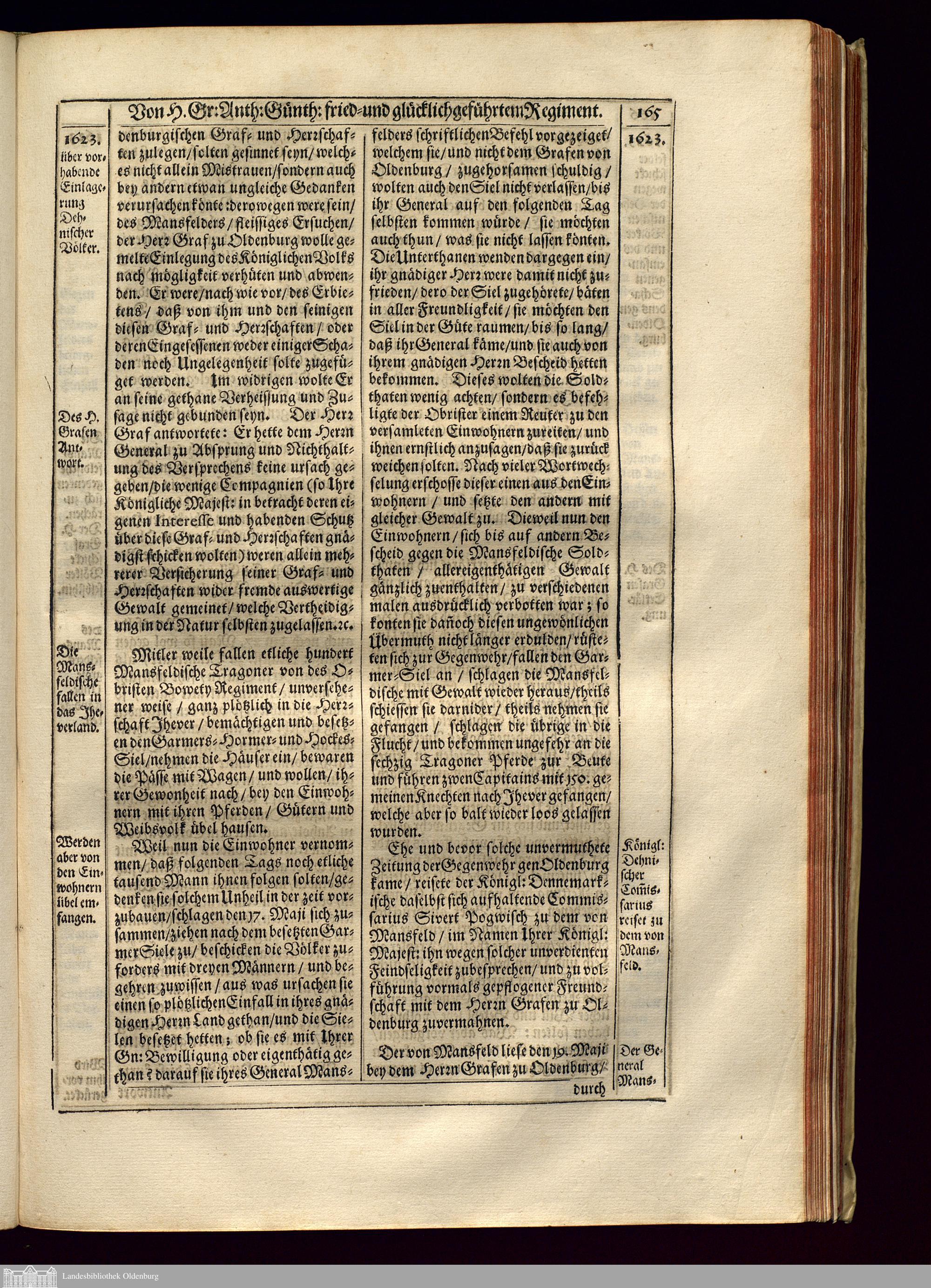 Oldenburgische Friedens- und der benachbarten Oerter Kriegs-Handlungen : Darinn Des ... Anthon Günthers/ Grafens zu Oldenburg und Delmenhorst/ ... Uralte hohe Ankunft/ ... fürsichtige ... Regirung ... und hochseliger Abschied: Wie auch Eine warhafte Beschreibung Der Grafschaften Oldenburg und Delmenhorst/ Herrschaften Jhever und Kniphausen/ Statt-Buttjhadinger- und WürderLanden [et]c. sambt ... wichtigen ... Historischen und Politischen Sachen/ so sich vom Jahr 1603. wie auch vorhero/ bis auf das Jahr 1667. begeben / Aus ... Original-Archivalischen Acten ... zusammen getragen/ und ... in Fünf Theile verabfasset/ Mit schönen kunstreichen Kupferstücken/ und ... Conterfaiten ausgezieret ... Von Johann-Just Winkelmann/ HochFürstl: Hessischen/ auch vormaligen HochGräfl: Oldenburgischen Rath und Historiographo