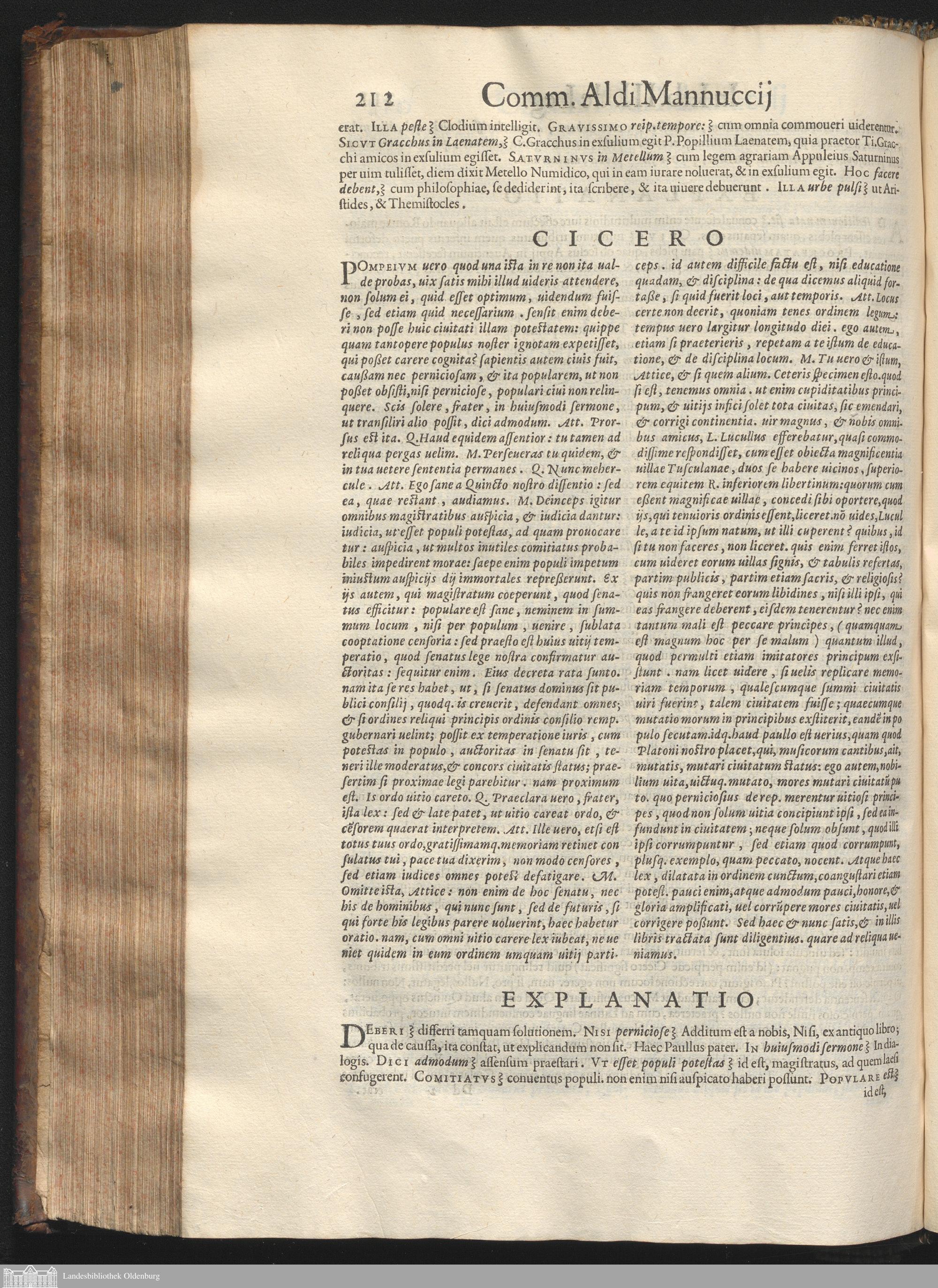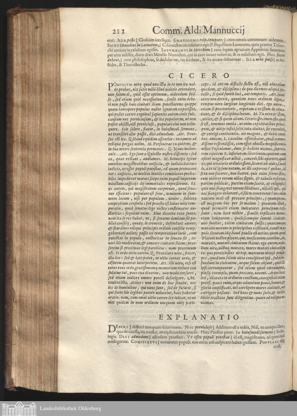 In M Tvillii Ciceronis De Legibvs Librvm III. Commentarius Aldi Mannuccij.