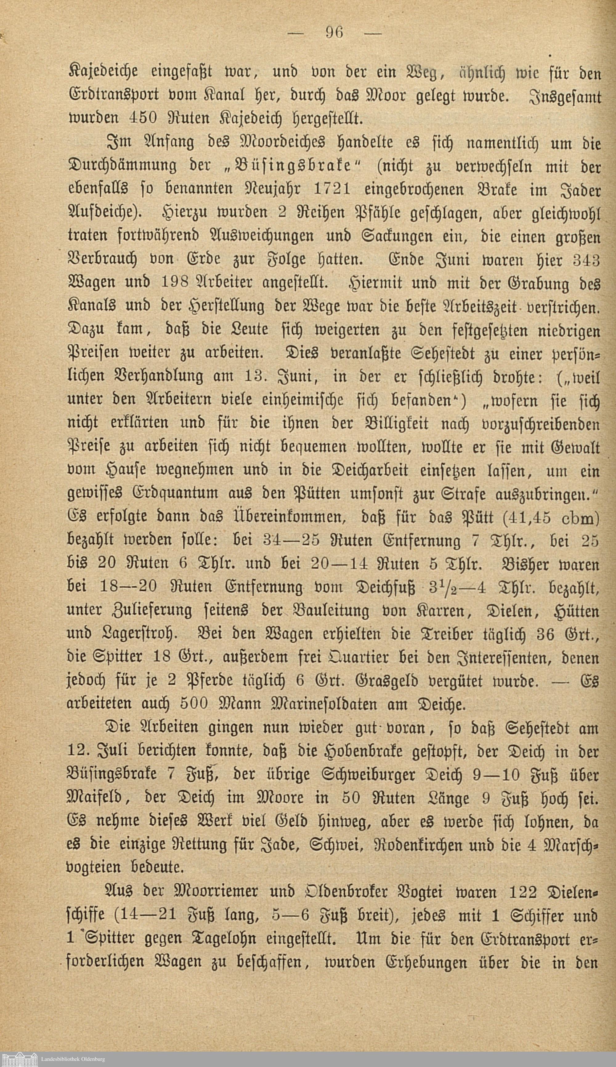 D. Der Deich in den Vogteien Schwei und Jade und im Amte Varel von 1613 bis 1617...