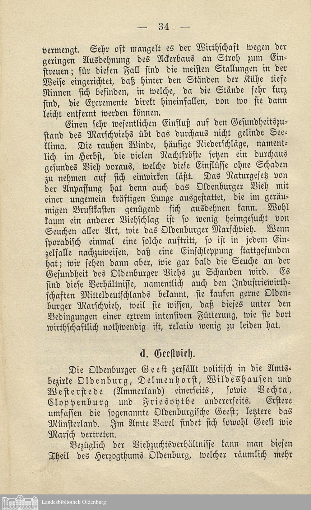 Die oldenburgische Viehzucht, ihre Entwicklung und ihr jetziger Standpunkt