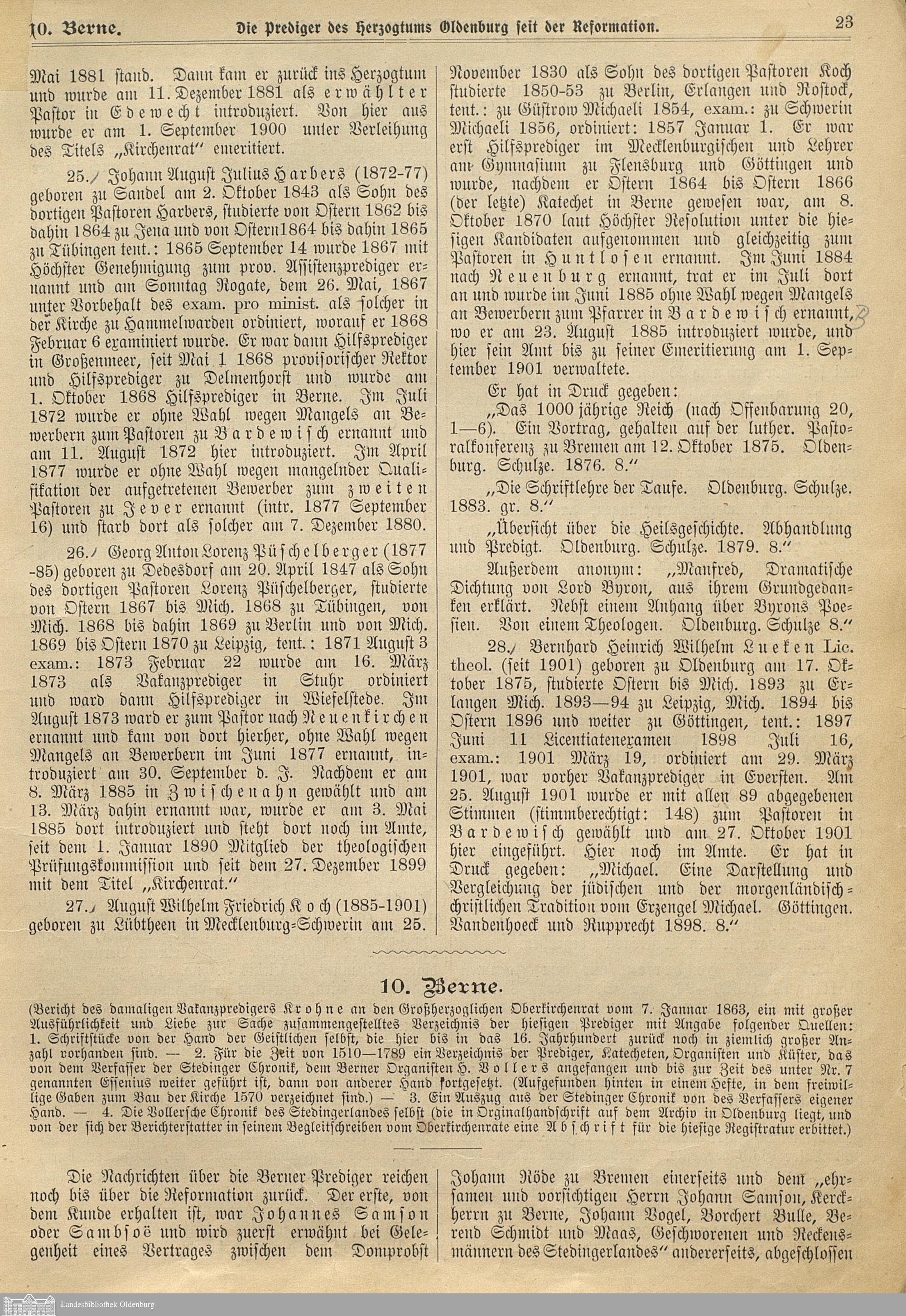 Zusammengestellt bis zum 1. Juli 1903 im "Oldenburgischen Kirchenblatt" Jahrgang...