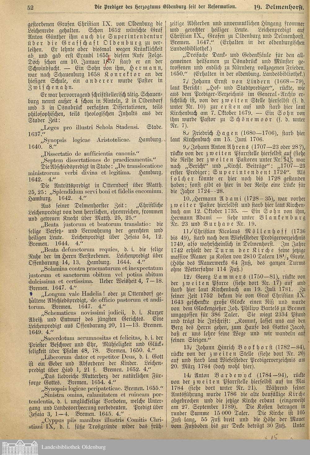 Zusammengestellt bis zum 1. Juli 1903 im "Oldenburgischen Kirchenblatt" Jahrgang...