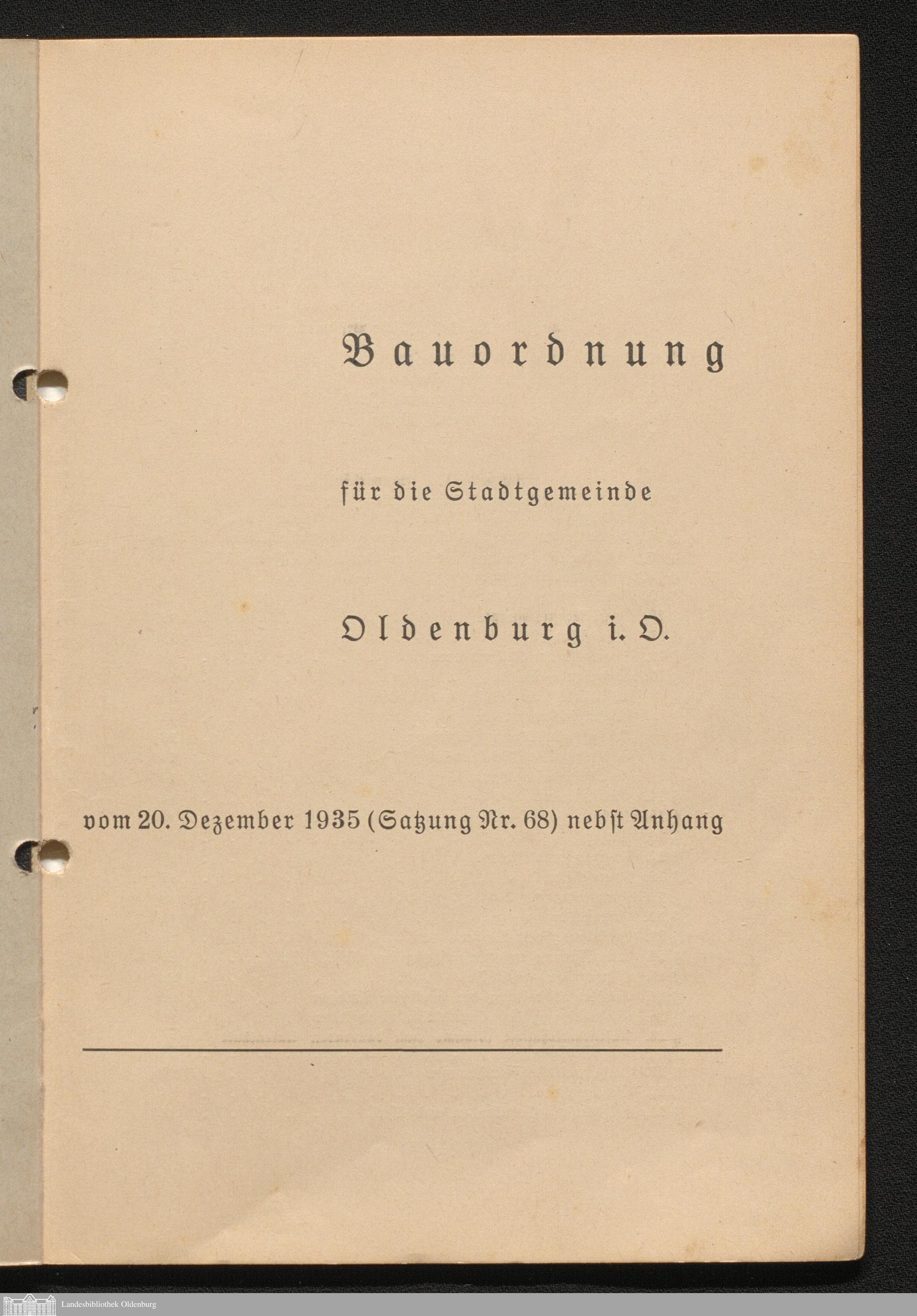 Bauordnung für die Stadtgemeinde Oldenburg i. O. : vom 20. Dezember 1935 (Satzung Nr. 68) nebst Anhang