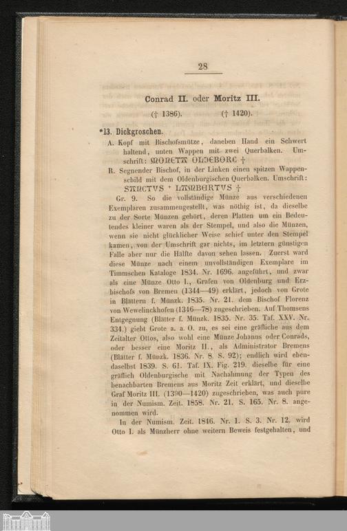 Oldenburg's Münzen und Medaillen : auf Grund der Münzsammlung Sr. Königl. Hoheit des Grossherzogs von Oldenburg / Historisch-Kritisch beschrieben von J.F.L.Th. Merzdorf