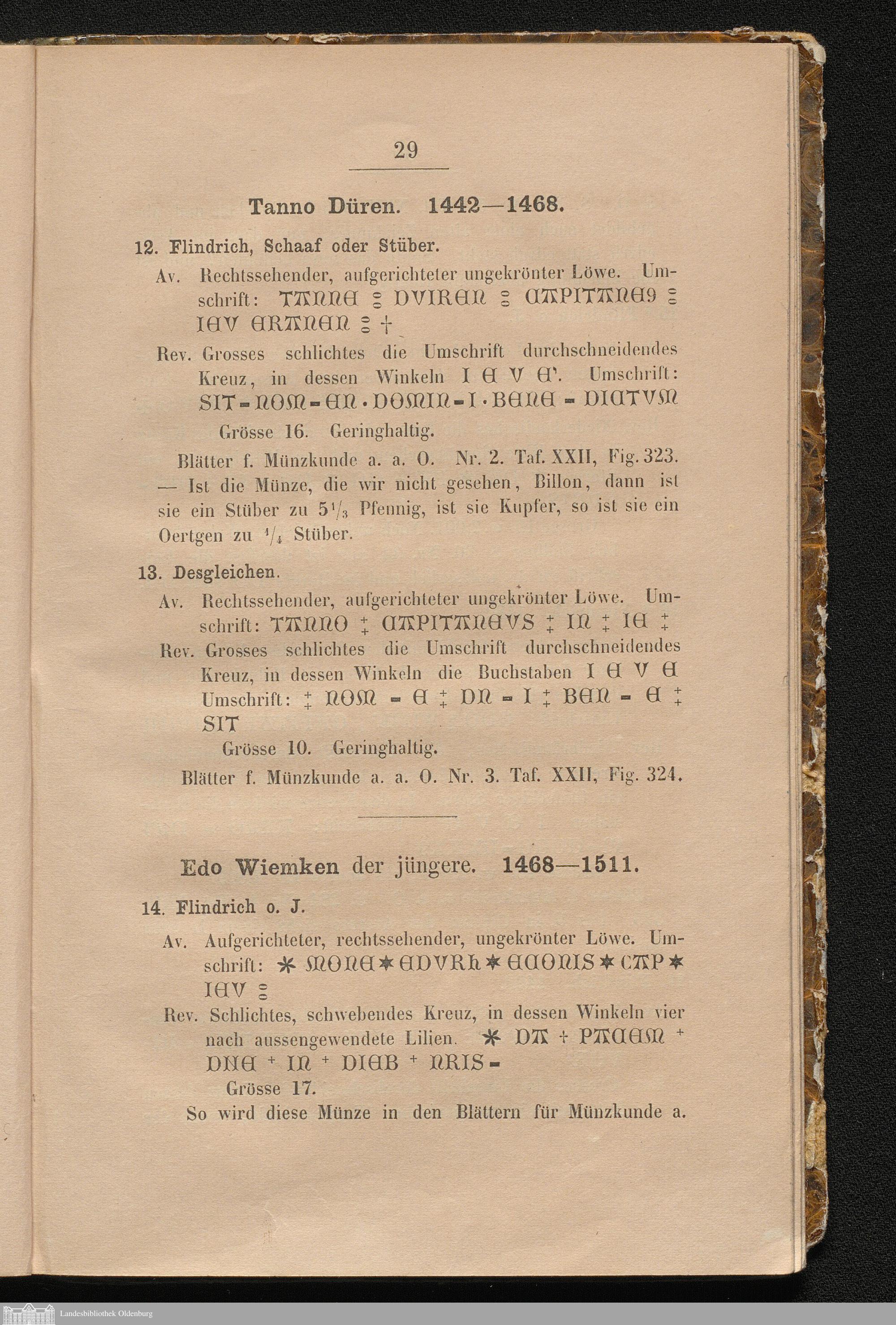 Die Münzen und Medaillen Jeverland's auf Grund verschiedener Münzsammlungen namentlich der Sr. Königl. Hoheit des Grossherzogs von Oldenburg / historisch-kritisch beschrieben von J.F.L.Th. Merzdorf