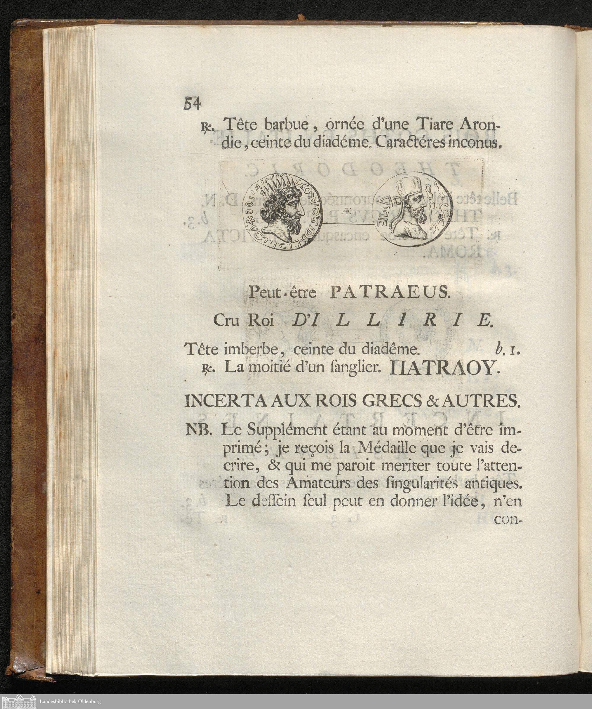 Supplément au Catalogue d'une Collection de Medailles Antiques, faite par la C(ssz) douair de Bentinck, née C(ssz) d'Aldenburg, Dame de Varel, Kniephausen et Doorwerth.