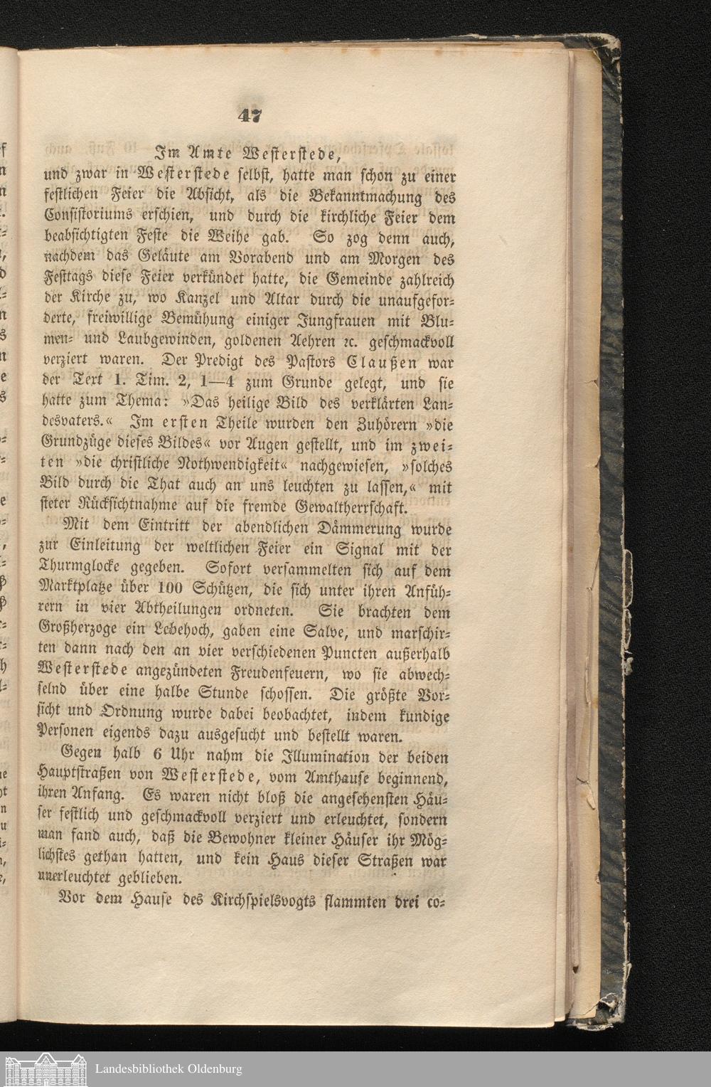 Oldenburg's Fest- und Jubelbuch : Ausführliche Beschreibung aller Feierlichkeiten, welche am 27. Novbr. und 24. Decbr. 1838 als den Jubelfesten der vor fünf und zwanzig Jahren mit der Rückkehr des rechtmäßigen Landesherrn wieder hergestellten Selbstständigkeit des Herzogthums Oldenburg und der neu organisirten Landesbewaffnung in der Stadt Oldenburg, wie im ganzen Herzogthum und der Erbherrschaft Jever, stattgefunden ; nebst einer Beschreibung und den Statuten des am 27. Novbr. 1838 zum Andenken dieses Tages gestifteten Haus- und Verdienst-Ordens Herzogs Peter Friedrich Ludwig und einer Nachricht von dem am 17. Janr. 1839 gehaltenen ersten Ordenstage ; Mit den Abbildungen der Ordenszeichen in Steindruck / Zusammengestellt und herausgegeben von C. F. Strackerjan