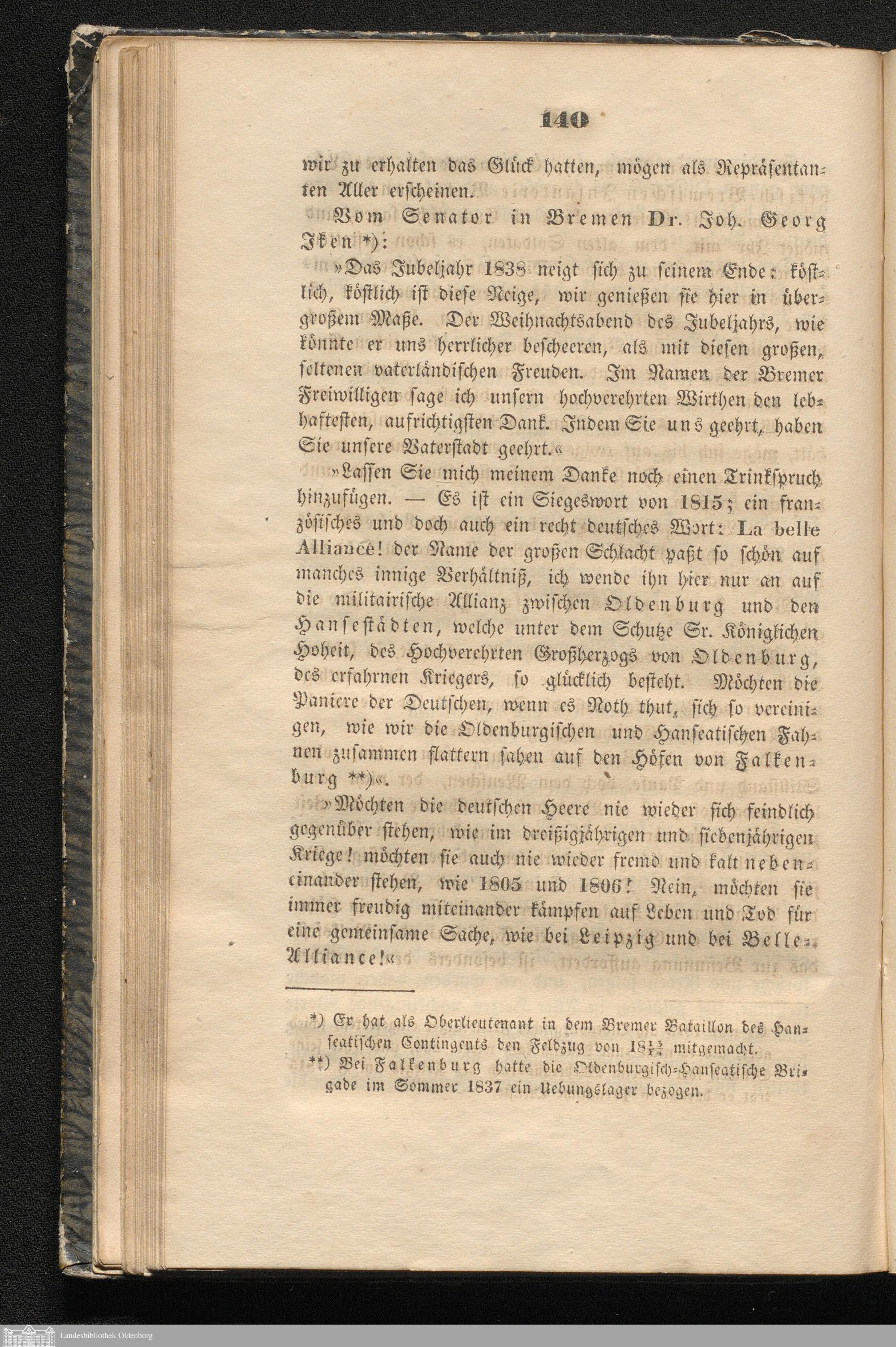 Oldenburg's Fest- und Jubelbuch : Ausführliche Beschreibung aller Feierlichkeiten, welche am 27. Novbr. und 24. Decbr. 1838 als den Jubelfesten der vor fünf und zwanzig Jahren mit der Rückkehr des rechtmäßigen Landesherrn wieder hergestellten Selbstständigkeit des Herzogthums Oldenburg und der neu organisirten Landesbewaffnung in der Stadt Oldenburg, wie im ganzen Herzogthum und der Erbherrschaft Jever, stattgefunden ; nebst einer Beschreibung und den Statuten des am 27. Novbr. 1838 zum Andenken dieses Tages gestifteten Haus- und Verdienst-Ordens Herzogs Peter Friedrich Ludwig und einer Nachricht von dem am 17. Janr. 1839 gehaltenen ersten Ordenstage ; Mit den Abbildungen der Ordenszeichen in Steindruck / Zusammengestellt und herausgegeben von C. F. Strackerjan
