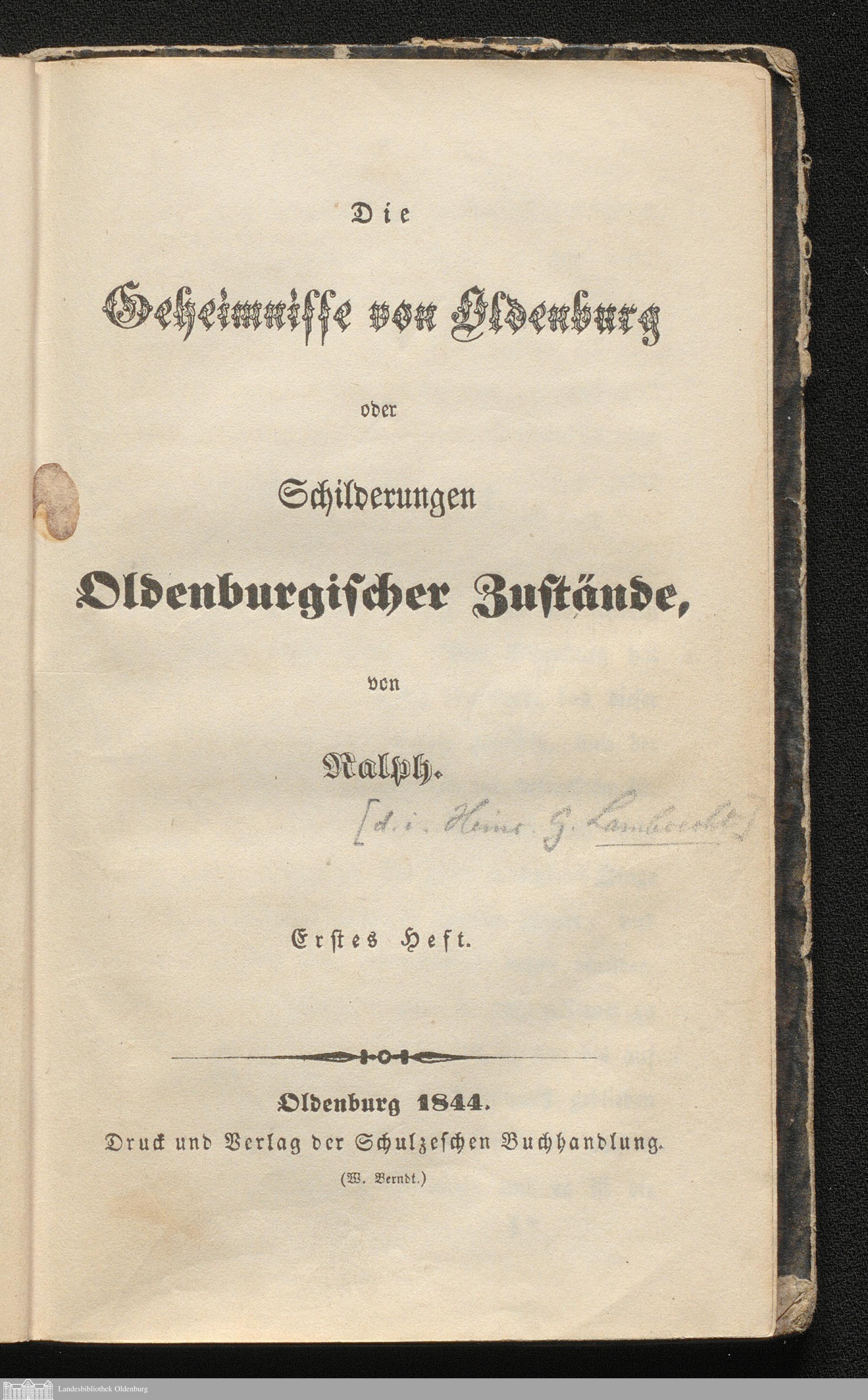 Die Geheimnisse von Oldenburg oder Schilderungen Oldenburgischer Zustände