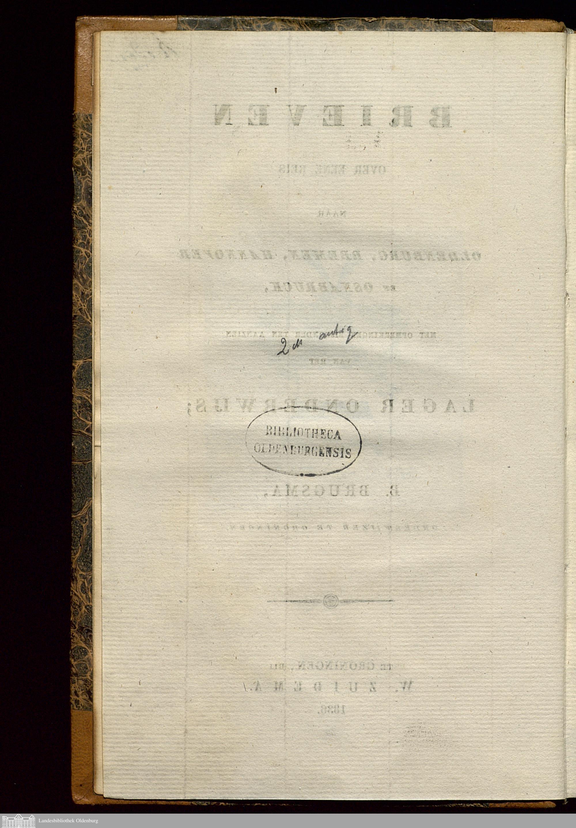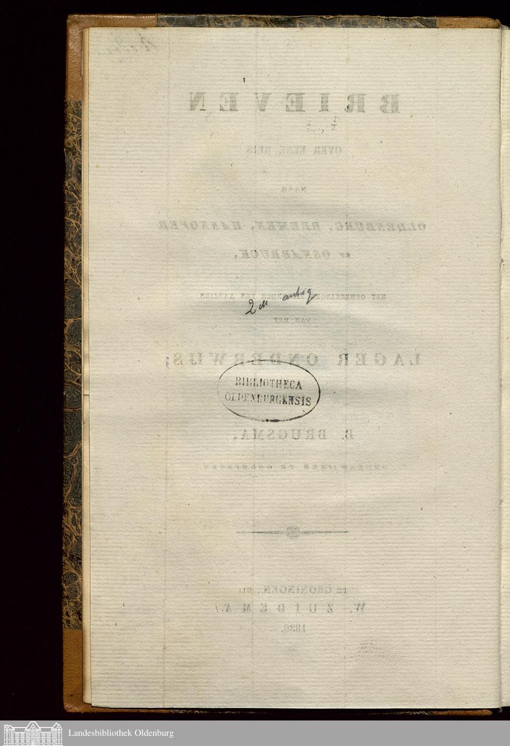 Brieven Over Eene Reis Naar Oldenburg, Bremen, Hannover En Osnabruck, Met Opmerkingen Bijzonder Ten Aanzien Van Het Lager Onderwijs / Door B. Brugsma, Onderwijzer Te Groningen