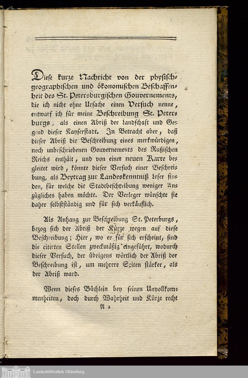 Versuch einer Beschreibung der natürlichen und ökonomischen Beschaffenheit des St. Petersburgischen Gouvernements : Mit einer Karte / Von Johann Gottlieb Georgi. Der Arzneygelahrtheit Doctor, der Rußisch-Kayserlichen und Königlich-Preußischen Akademien der Wißenschaften, der Römisch-Kayserlichen Akademie der Naturforscher, der freyen Oekonomischen Gesellschaft in St. Petersburg und der Gesellschaft der Berlinischen Naturforschenden Freunde, Mitglied