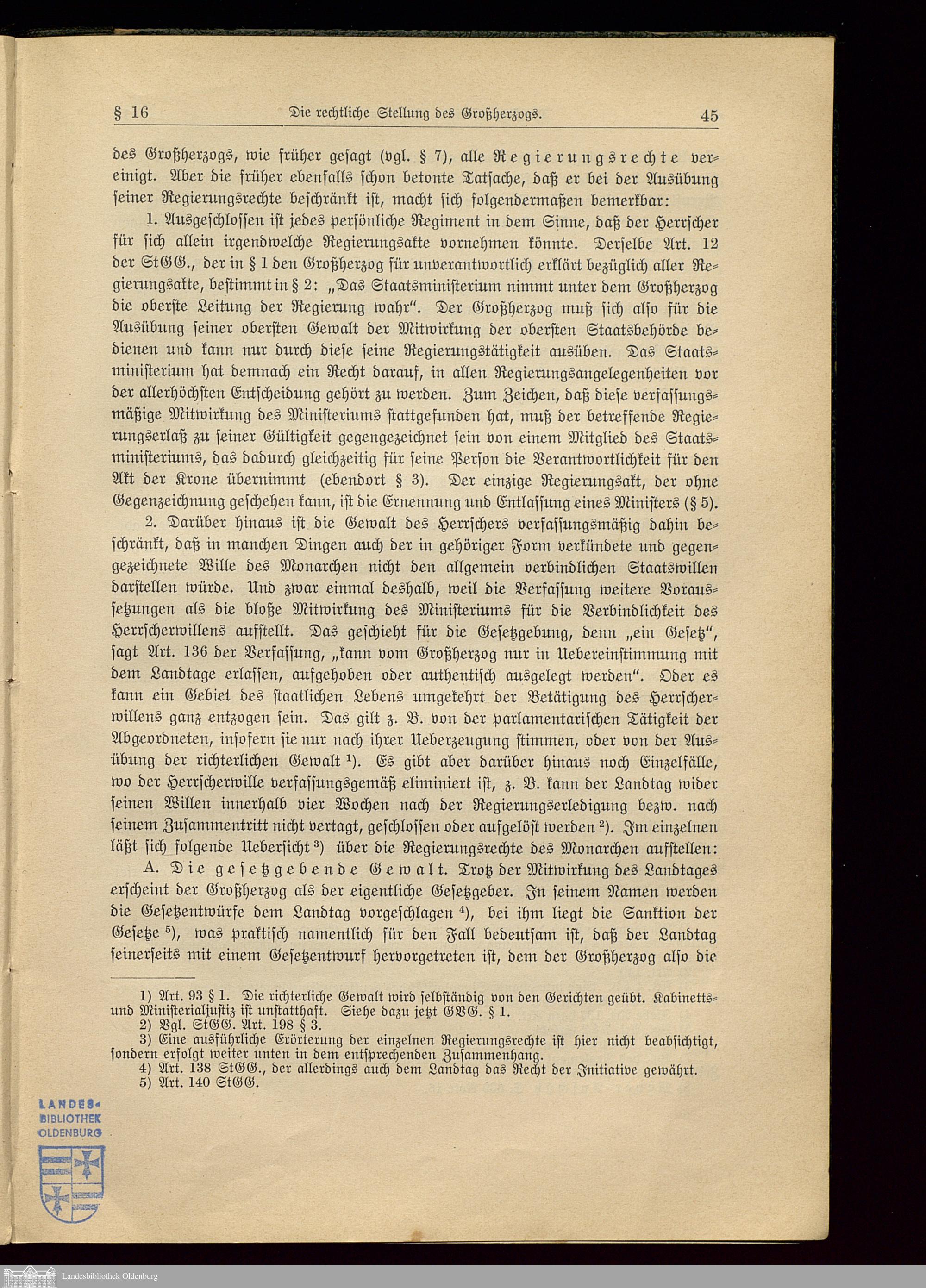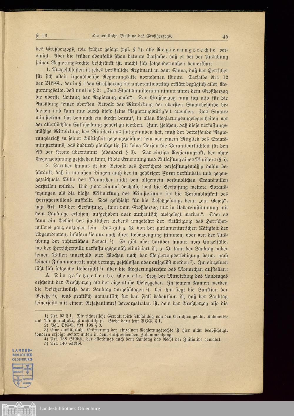 Das Staatsrecht des Großherzogtums Oldenburg / von Walther Schücking