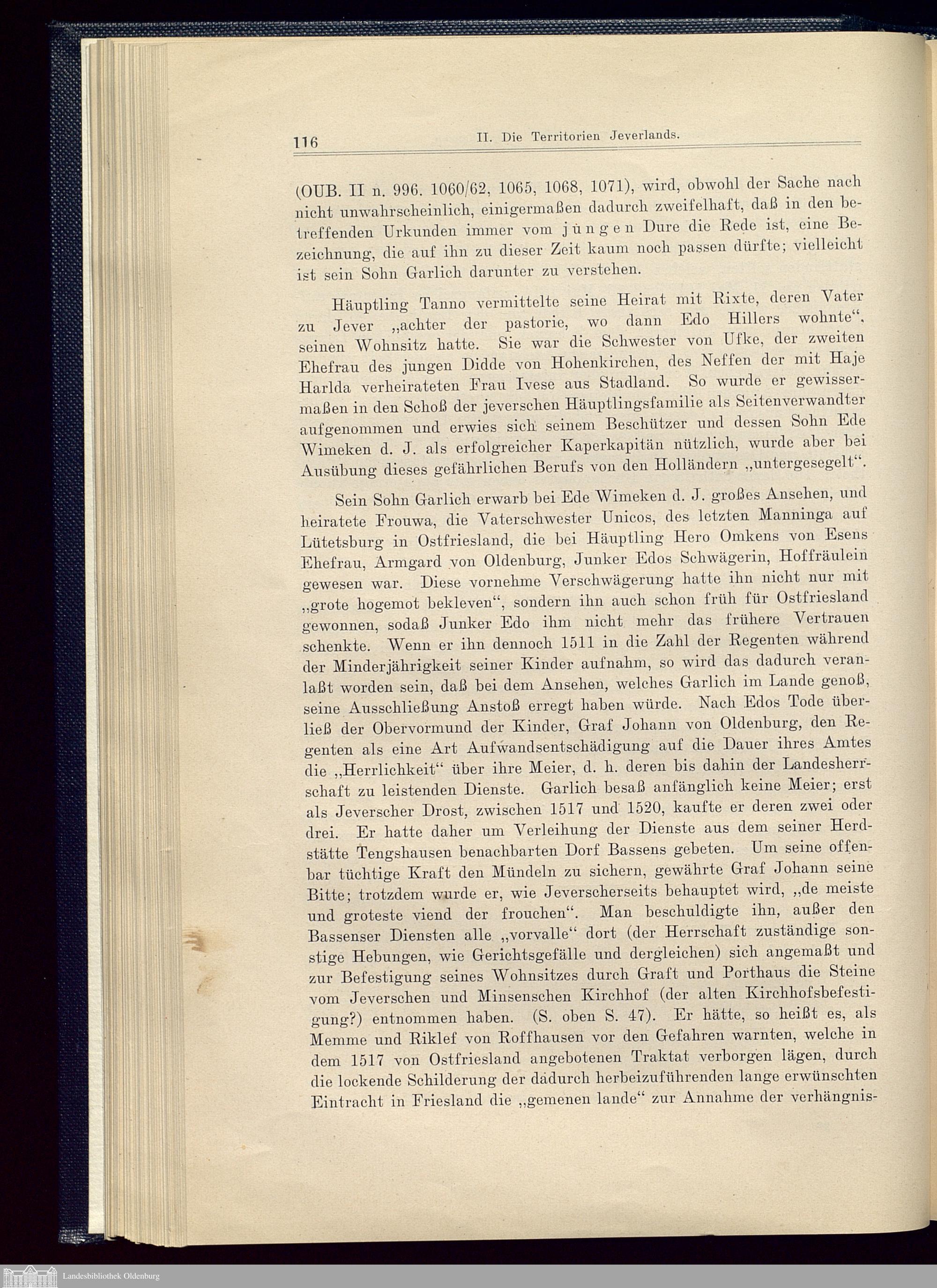 II. Die Territorien Jeverlands. Östringen, Wangerland, Rüstringen.