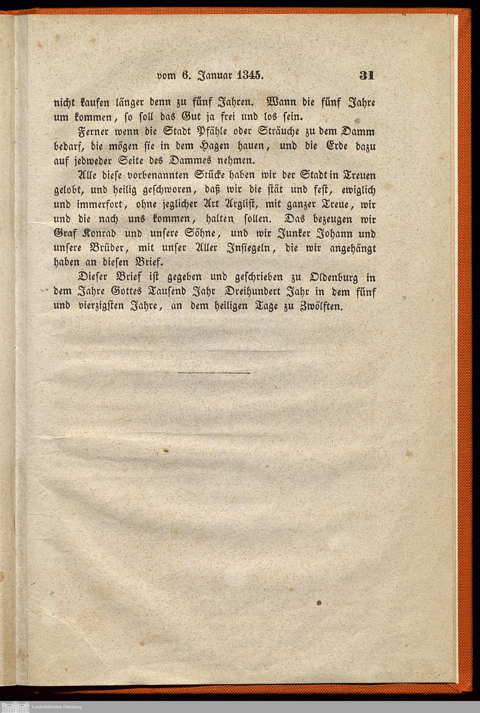 Der Freibrief der Stadt Oldenburg vom Januar 1345.