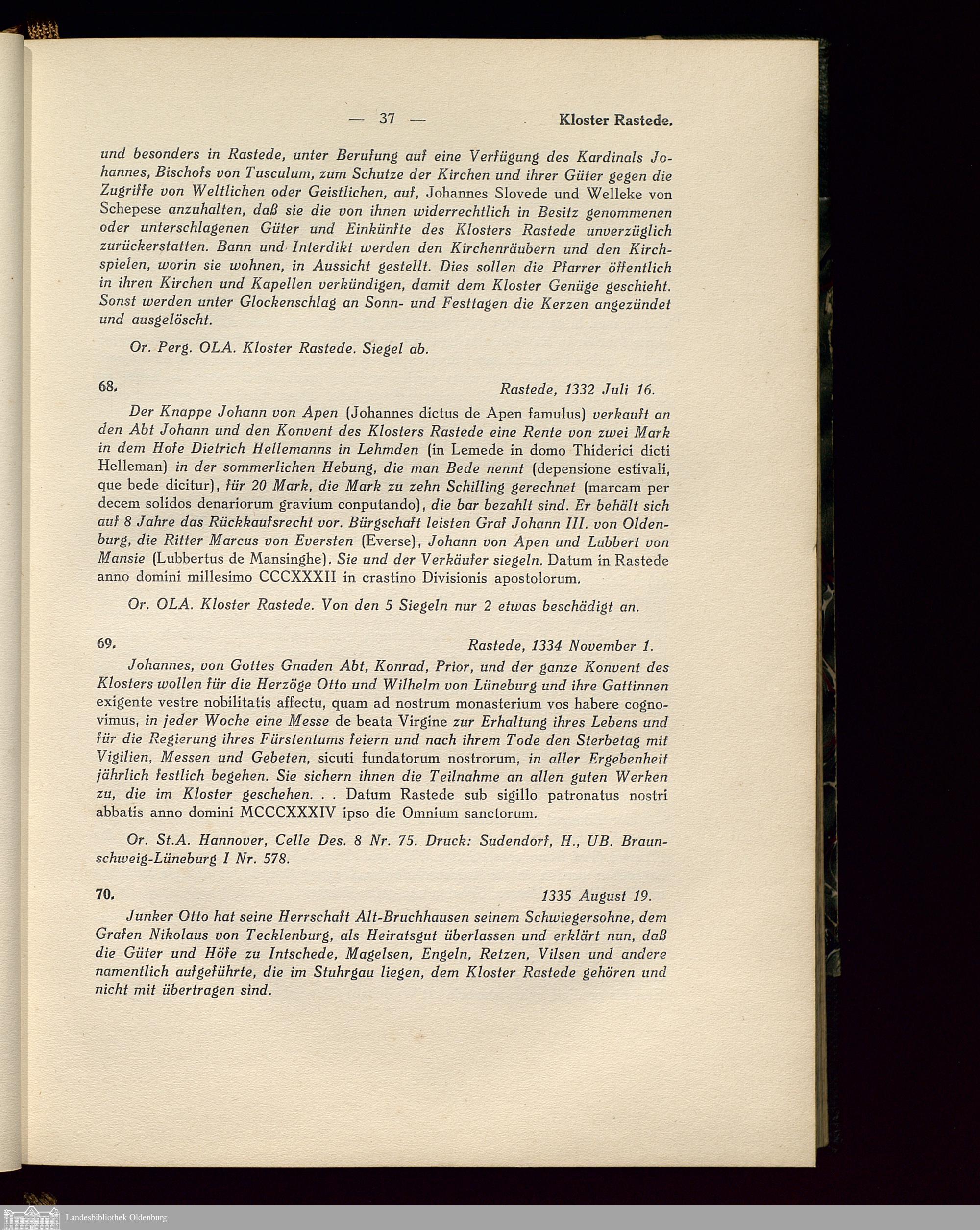 Die Klöster der Grafschaft Oldenburg. Rastede.