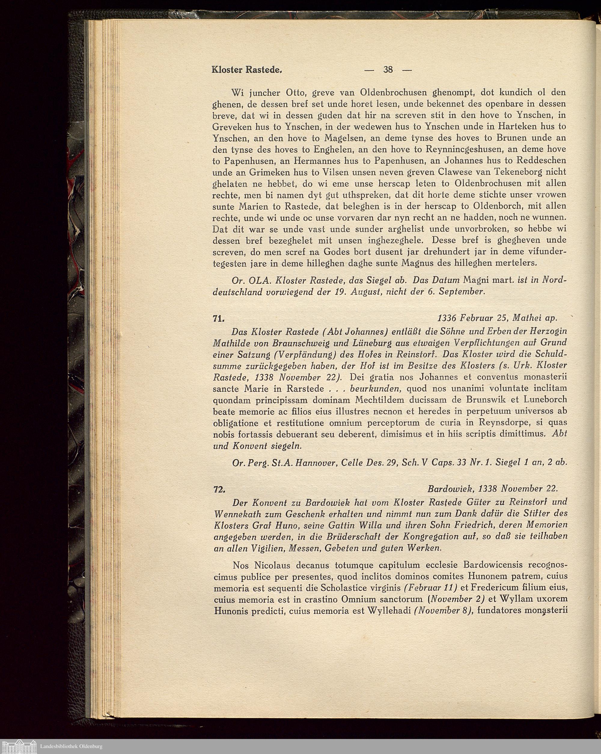 Die Klöster der Grafschaft Oldenburg. Rastede.