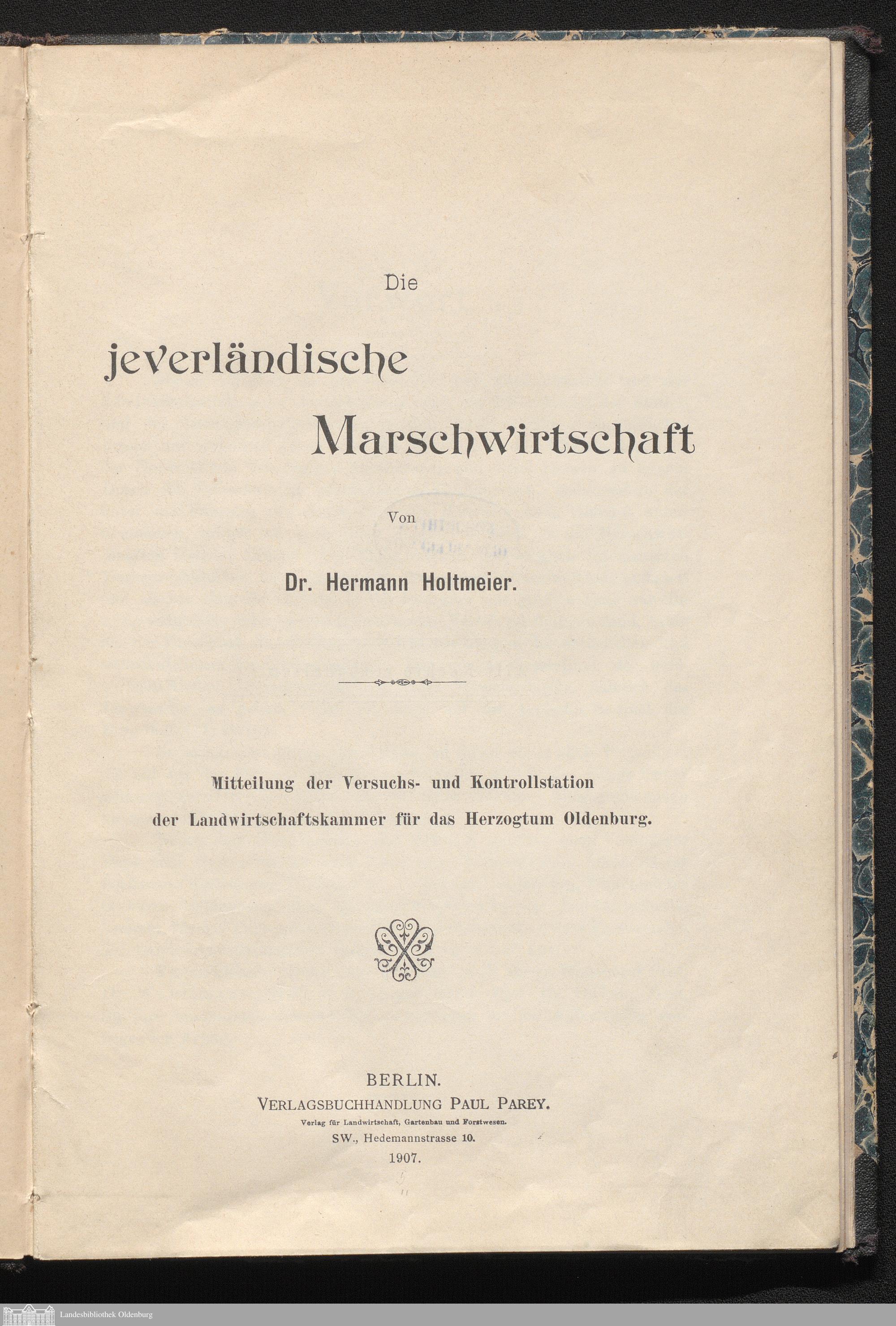 Die jeverländische Marschwirtschaft / von Hermann Holtmeier
