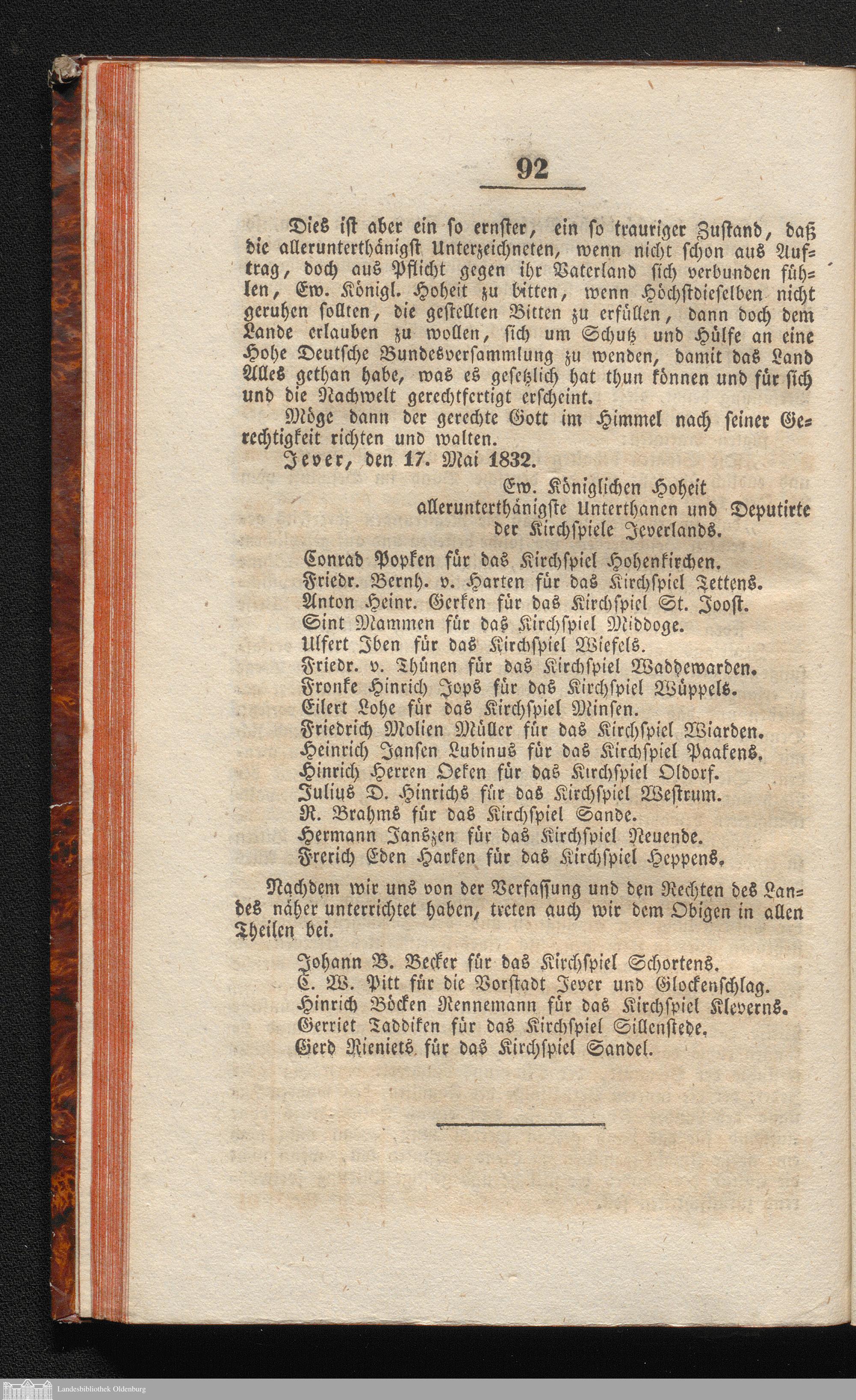 XIII. Vorstellung und Bitte der Jeverischen Landschaft vom 17. Mai 1832. Eingesandt den 18. Mai 1832.