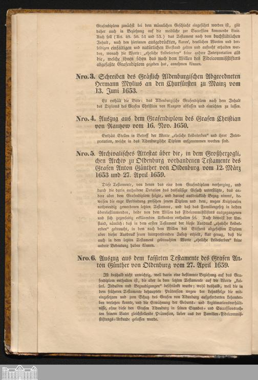 Nro. 5. Archivalisches Attestat über die, in dem Großherzoglichen Archiv zu Oldenburg vorhandenen kassierten Testamente des Grafen Anton Günther von Oldenburg vom 12. März 1653 und 27. April 1659.