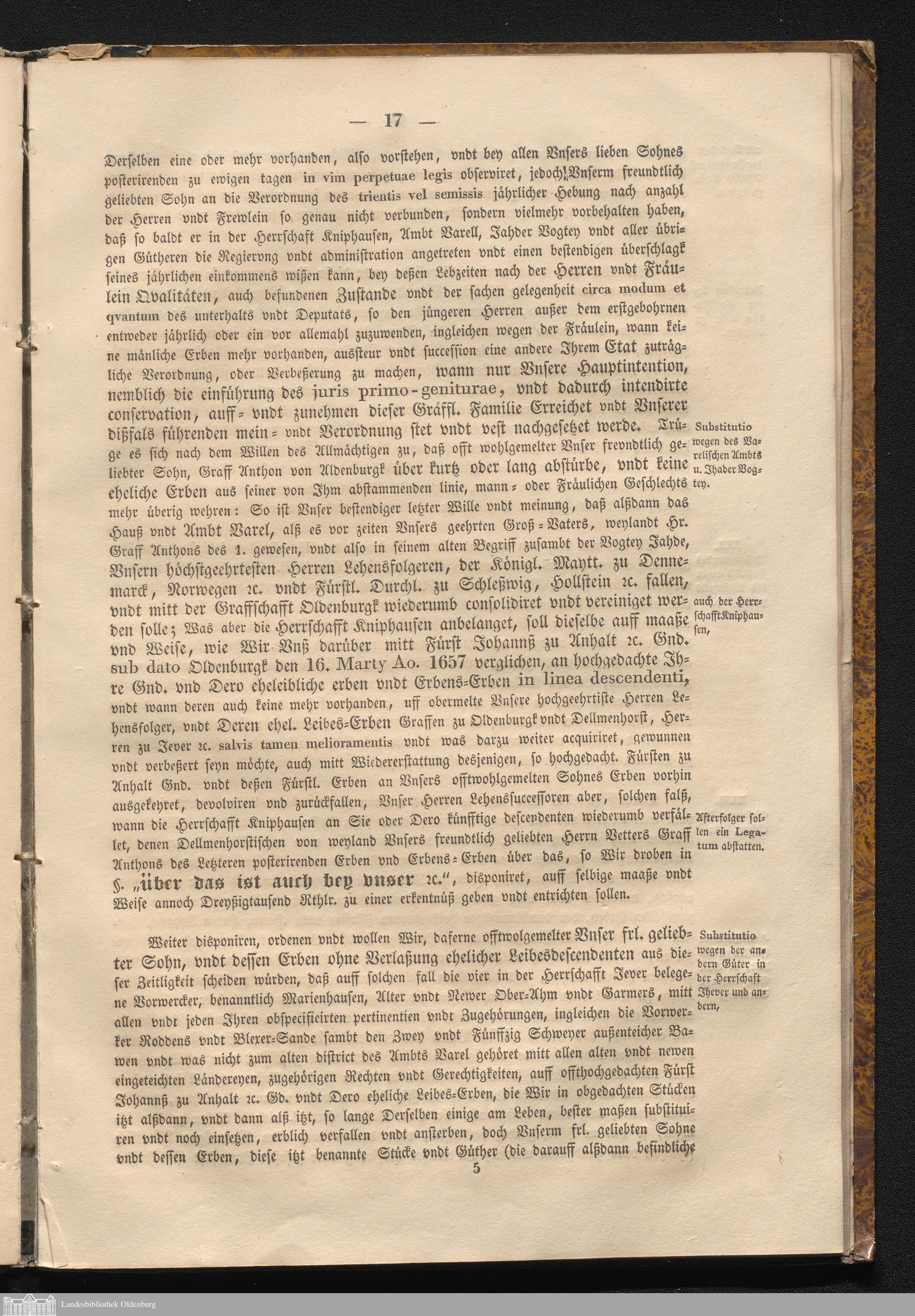 Nro. 6. Auszug aus dem kassierten Testamente des Grafen Anton Günther von Oldenburg, d. d. Oldenburg den 27.April 1659.