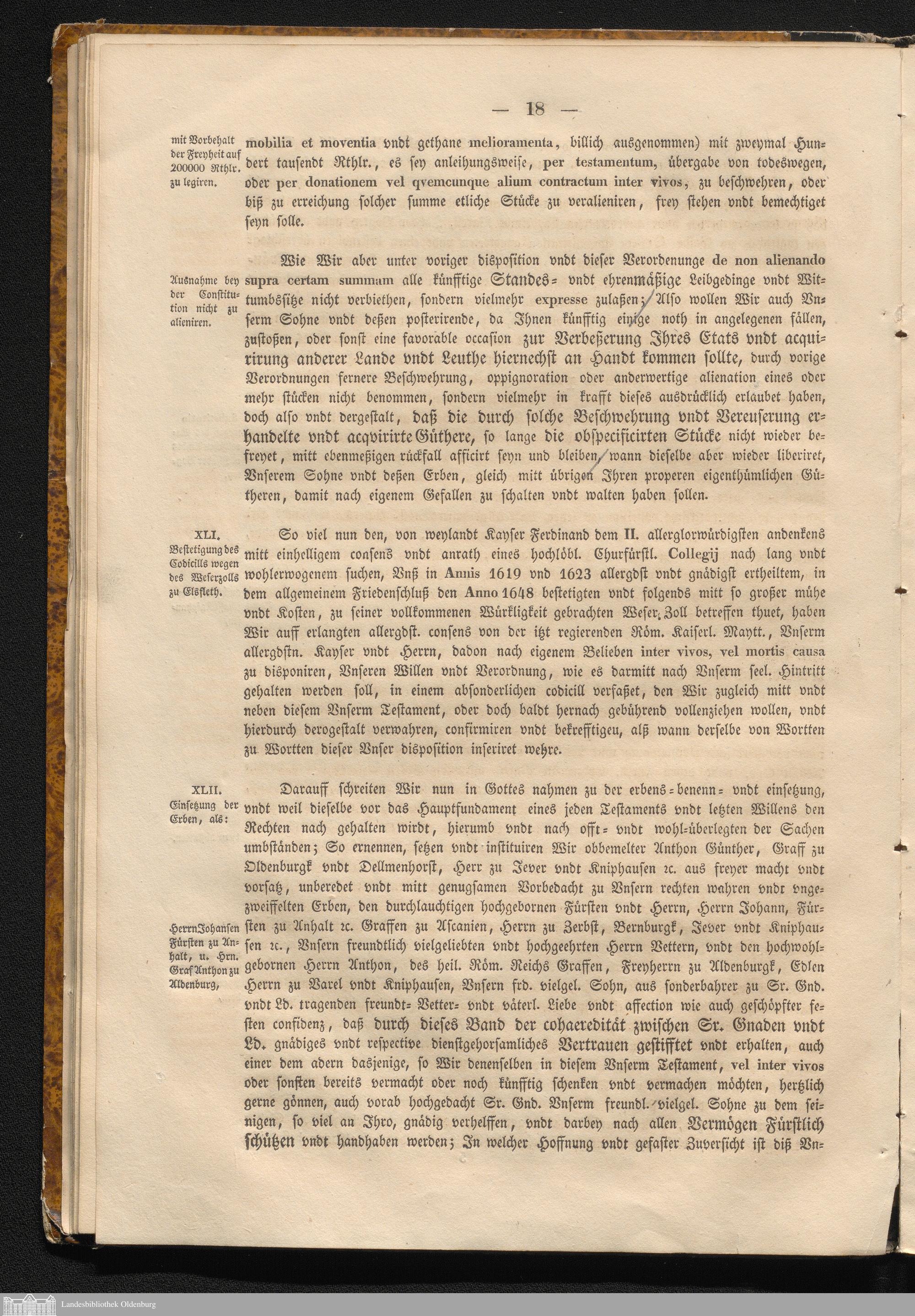 Des weiland regierenden Grafen Anton Günter zu Oldenburg und Delmenhorst, Herren zu Jever und Kniphausen etc. Testatment