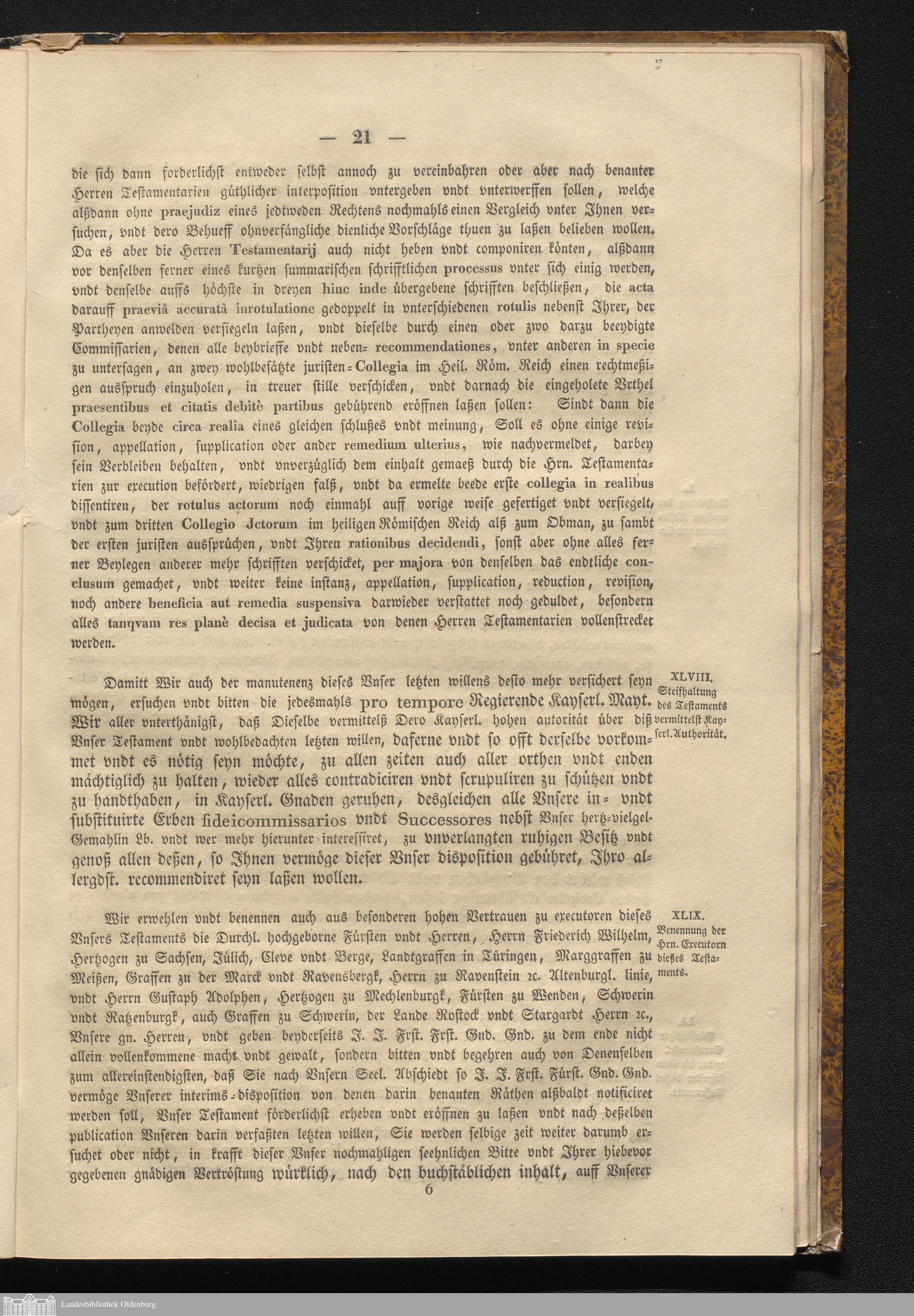 Nro. 6. Auszug aus dem kassierten Testamente des Grafen Anton Günther von Oldenburg, d. d. Oldenburg den 27.April 1659.