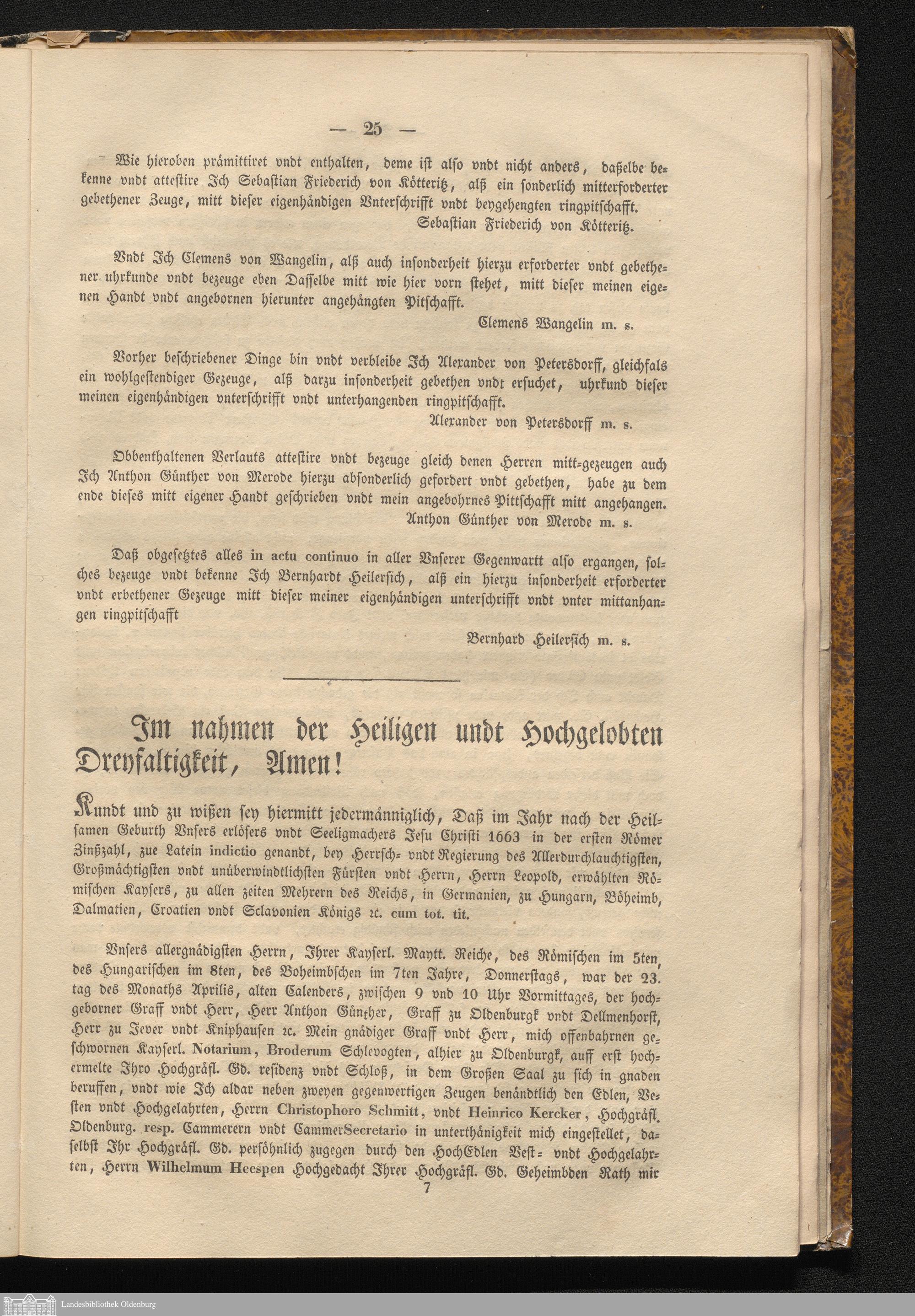 Nro. 5. Archivalisches Attestat über die, in dem Großherzoglichen Archiv zu Oldenburg vorhandenen kassierten Testamente des Grafen Anton Günther von Oldenburg vom 12. März 1653 und 27. April 1659.