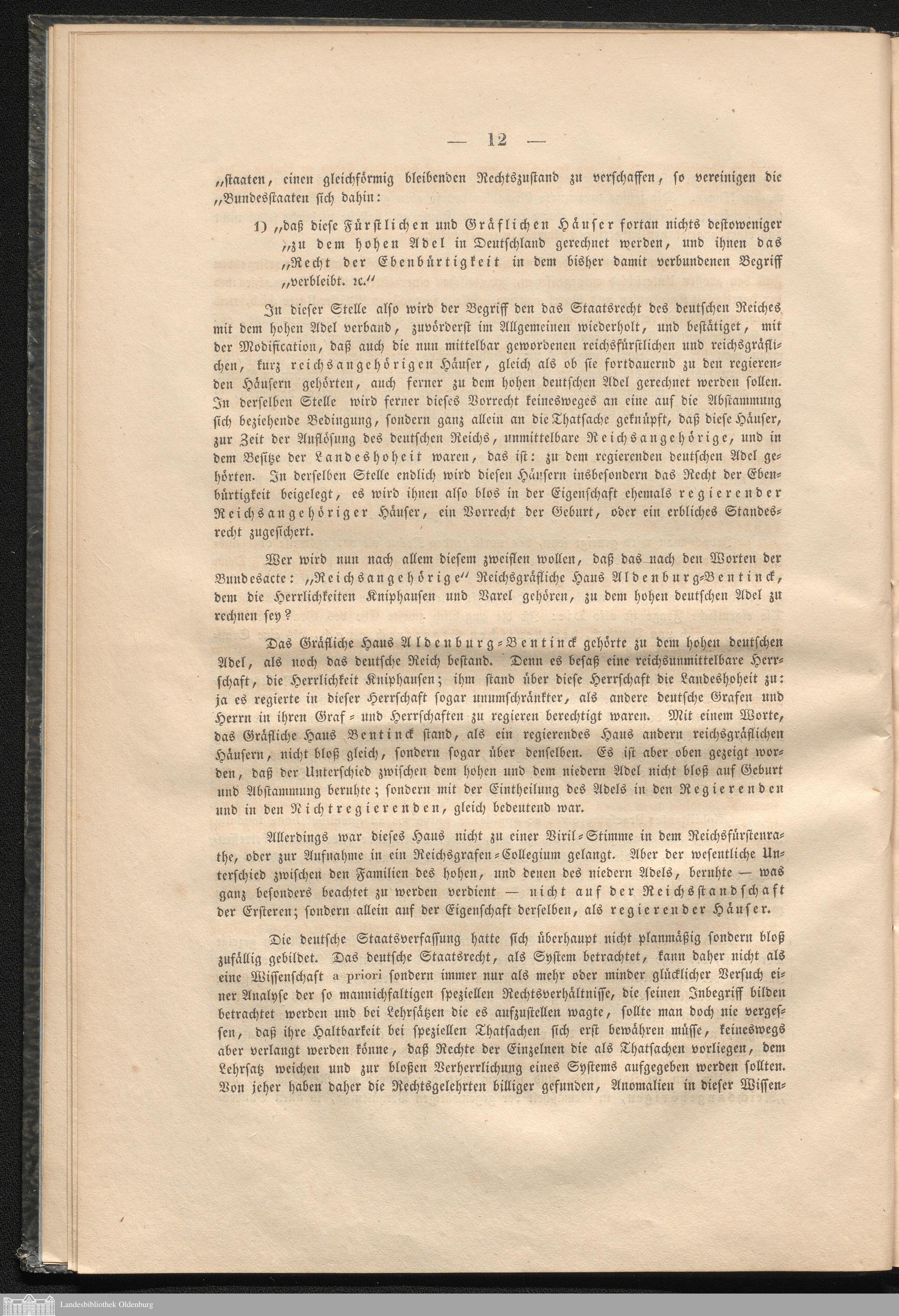 Klage für den Herrn Reichsgrafen Johann Carl Bentinck ..., Kläger, wider den Herrn Reichsgrafen Wilh. Gustav Friedr. Bentinck ..., Beklagte, das Recht der Succession in das Corpus pro indiviso der Reichsgräflich Aldenburg-Bentinckschen Familien-Fideicommißherrschaften und Güter, auch deßhalb theils verübte und theils bevorstehende Beinträchtigungen betr. / [F. R. von Harten]