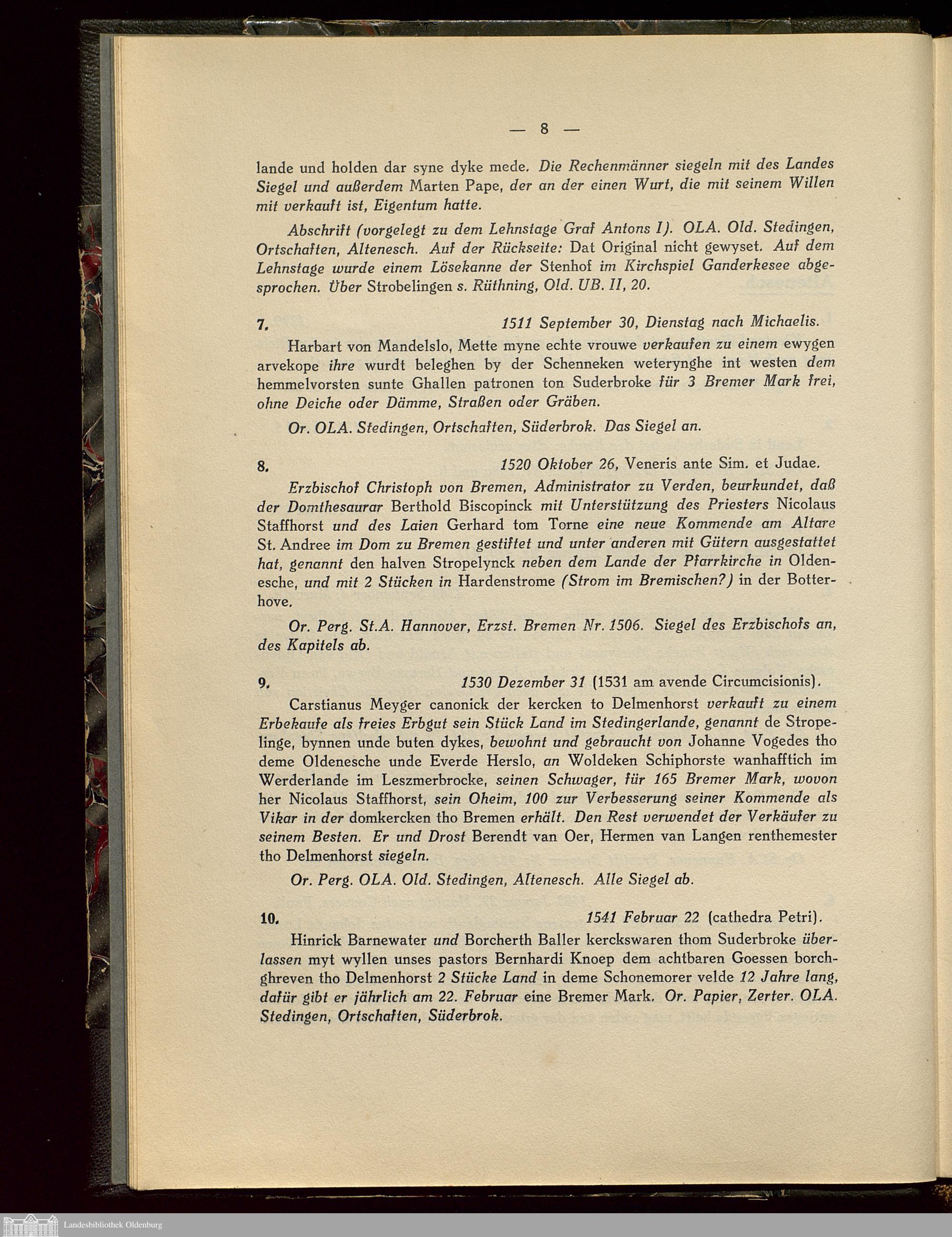 Bd. 7 (1934) Urkundenbuch der Kirchen und Ortschaften der Grafschaft Oldenburg / von Gustav Rüthning